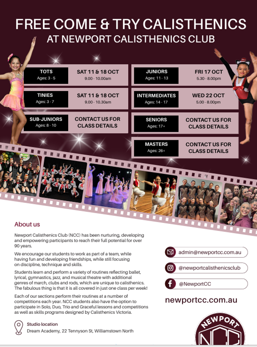 Thursday 25 September Cruickshanks Park, 9:30am -11am