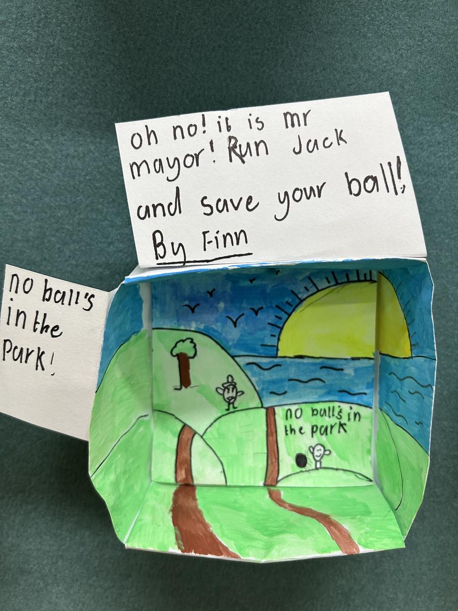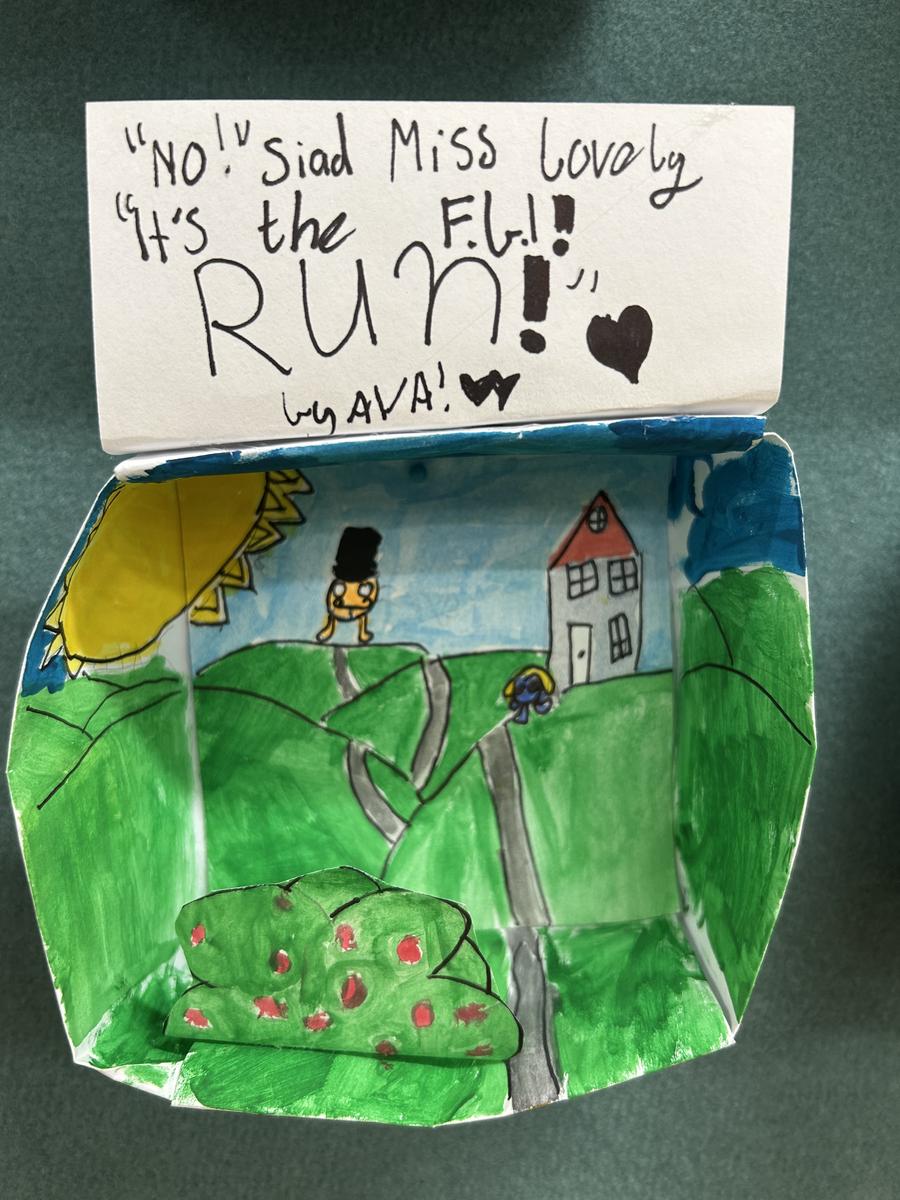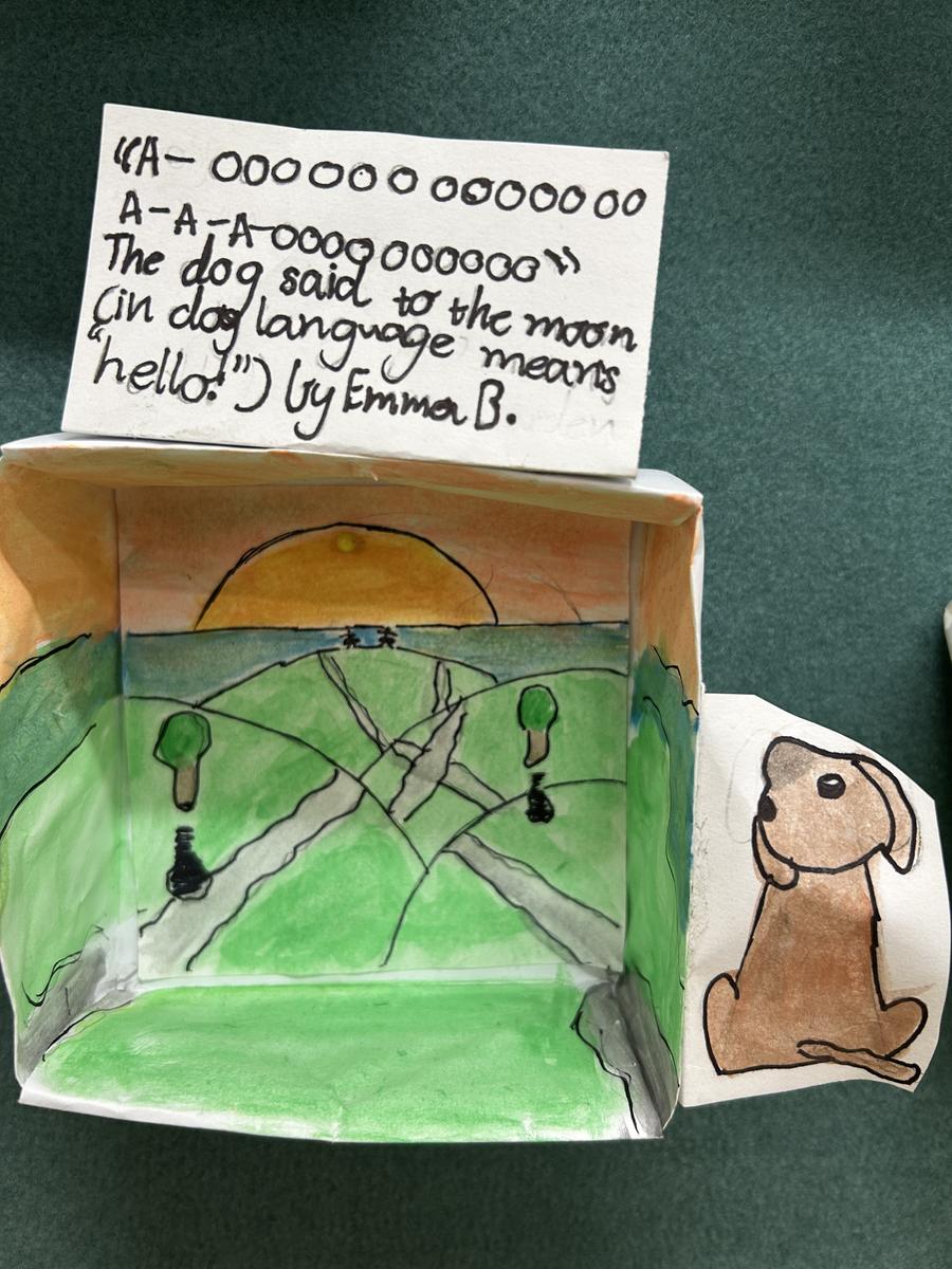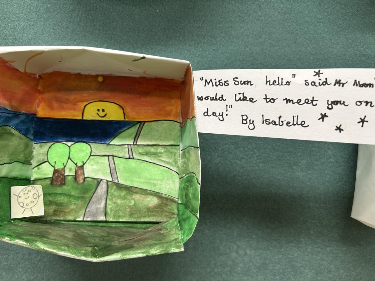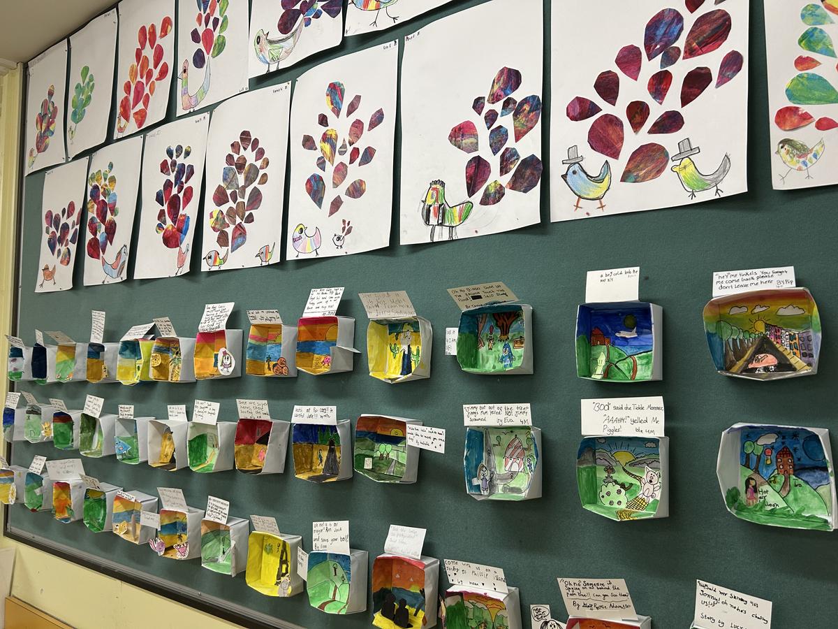 Students in grades 3 and 4 have been busy sewing toadstools, and creating perspective drawings through their 'story in a box'.