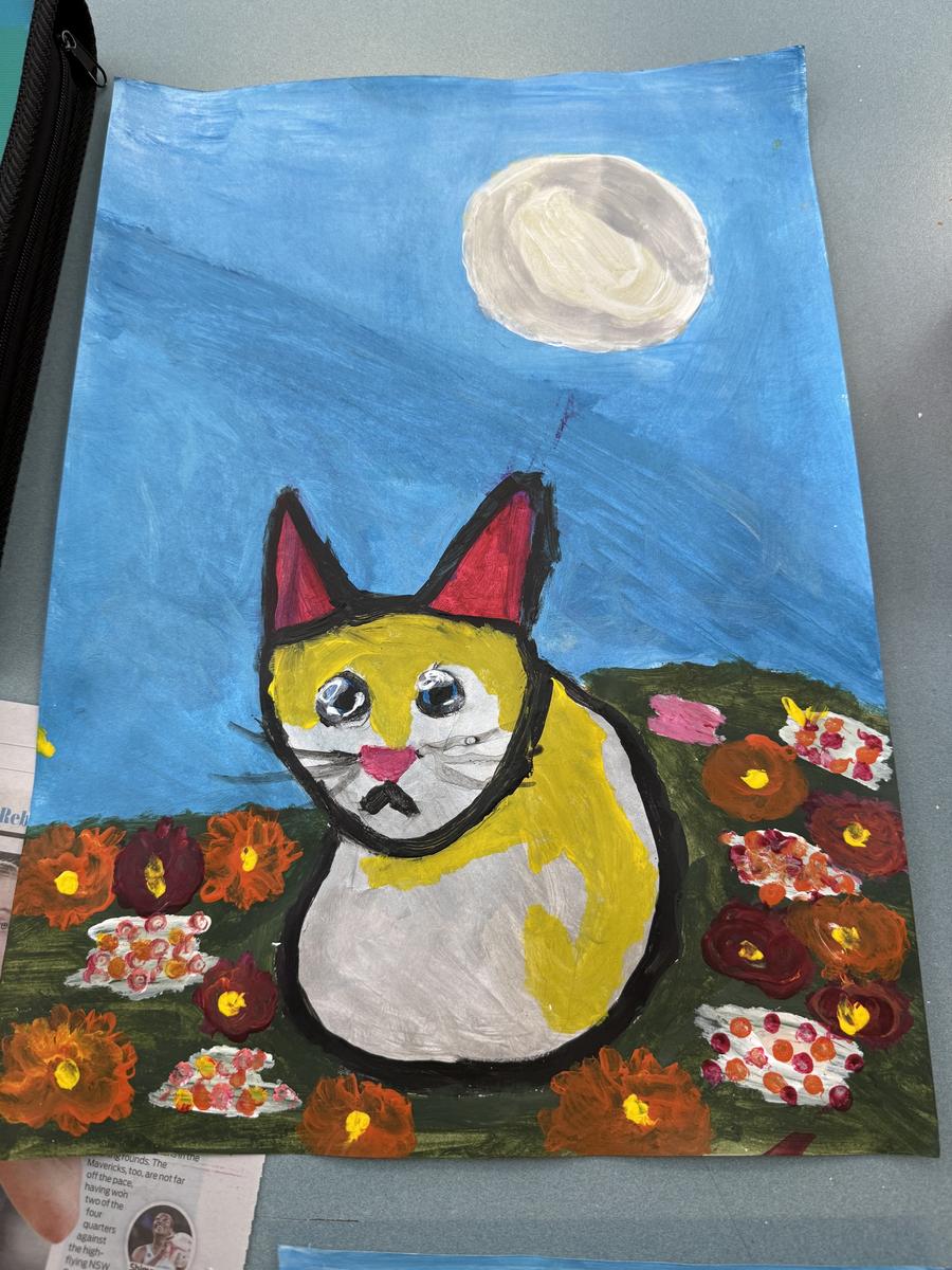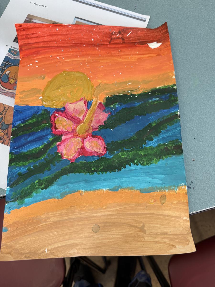 The Year 7 Visual Art students are painting using acrylic paint of a landscape as part of their environments studies and for them to practice their painting skills before Indigenous painting. Here are some examples of student’s work this term: