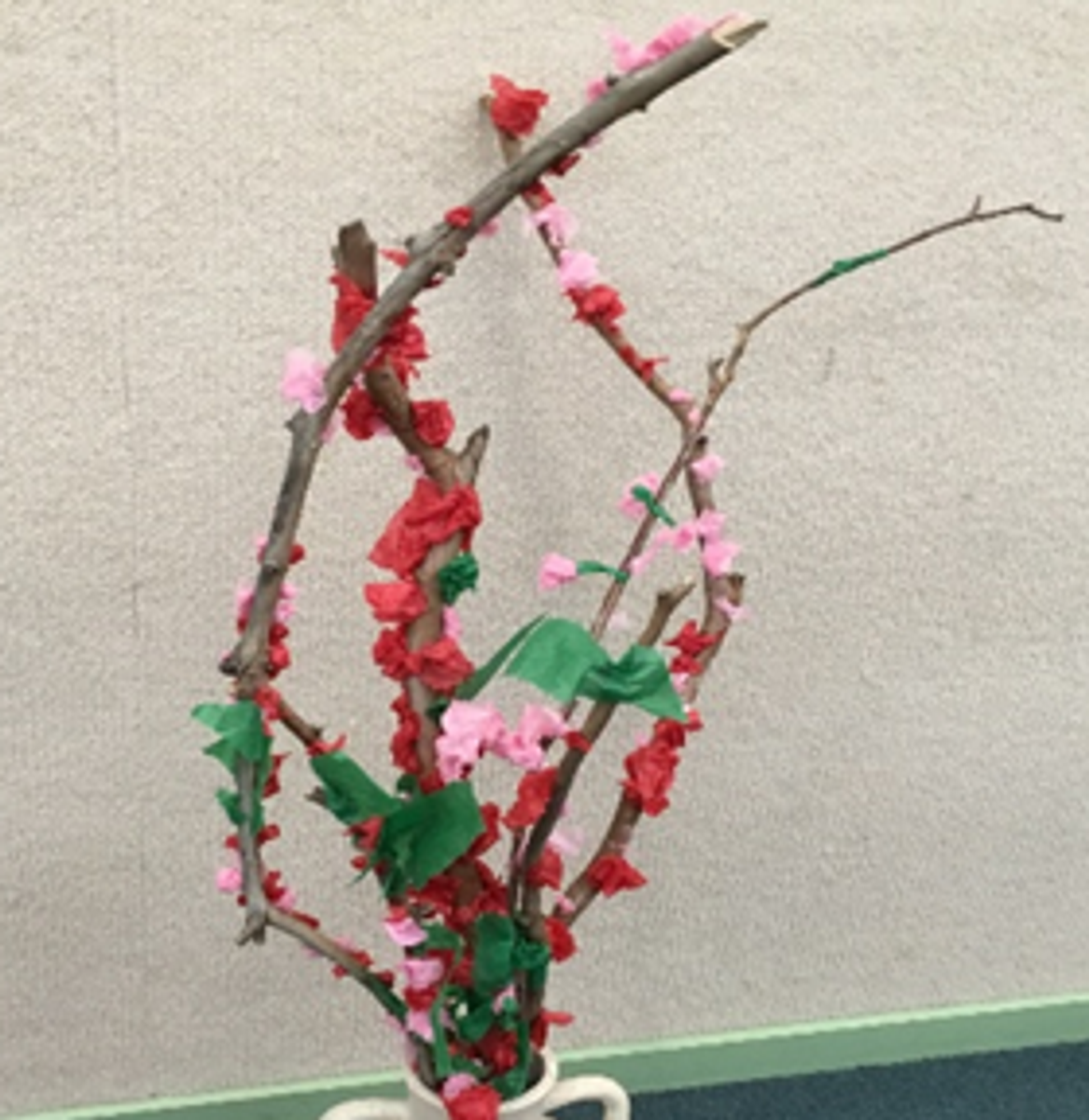 As the warmer weather has arrived, we begun to share books about the signs of spring. As we set off for our fortnightly nature walk the children were excited to notice some of those signs of spring along the way. Each time they saw blossom on the cherry trees, snowdrops growing on the nature strip, spring flowers and birds nests in the trees, we stopped so that the children had the opportunity to touch, smell, make observations, share their knowledge and ask questions. Once at the nature reserve, each child had a magnifying glass to see if they could find more signs of springs there too, budding plants and flowers were found, many of children were particularly keen to collect long sticks that had fallen from the trees. They decided that we could bring them back with us to make a cherry tree for our classroom, which they did by creating tissue paper flowers to attach to their sticks, they also created their own individual spring flowers, to add a touch of spring to our classroom too.