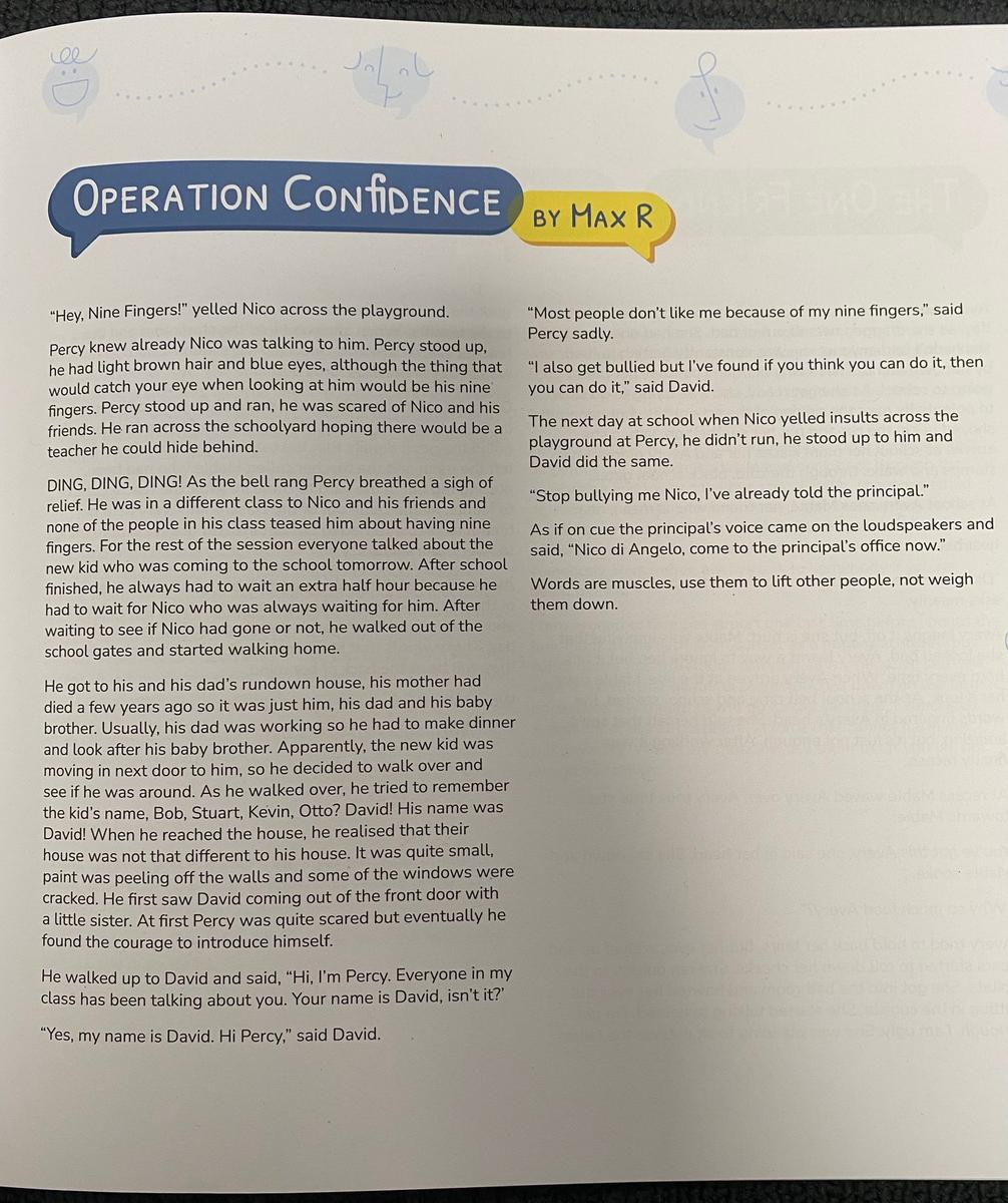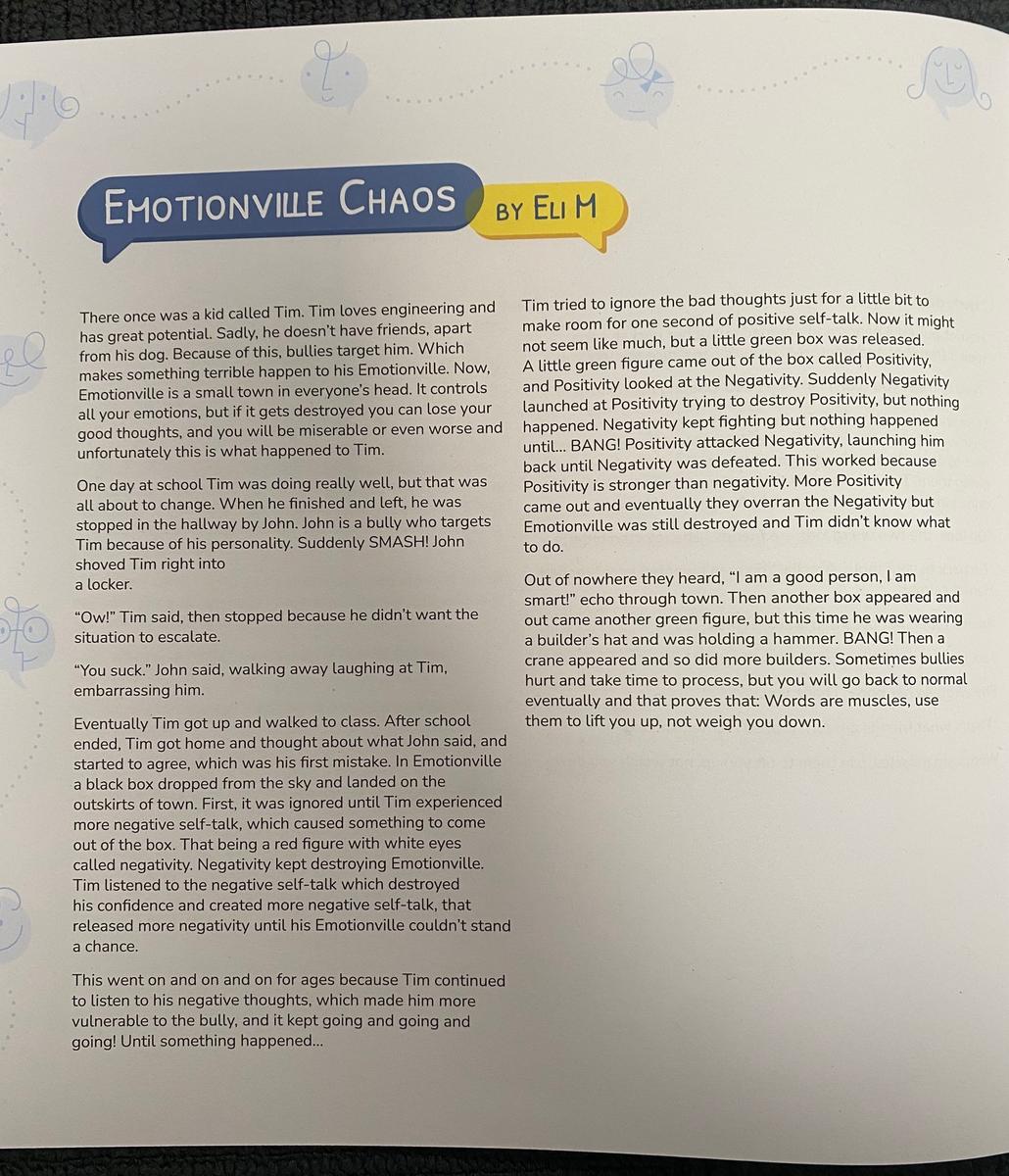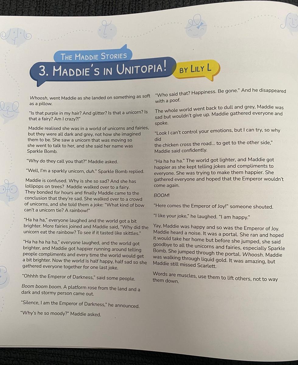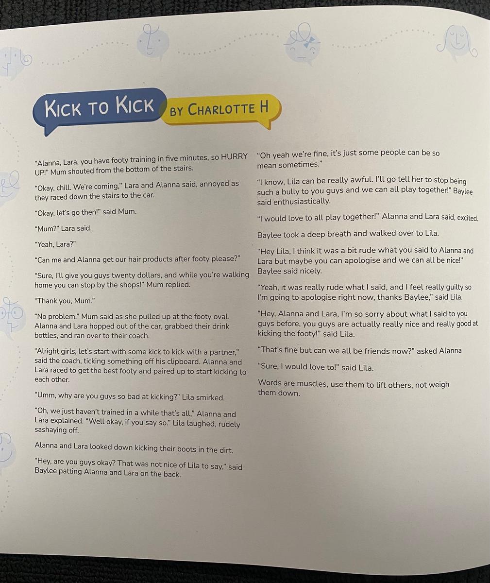 We are excited to share our student's stories with you below. The published book (seen in the picture)is also available in Bayside libraries and our school library.