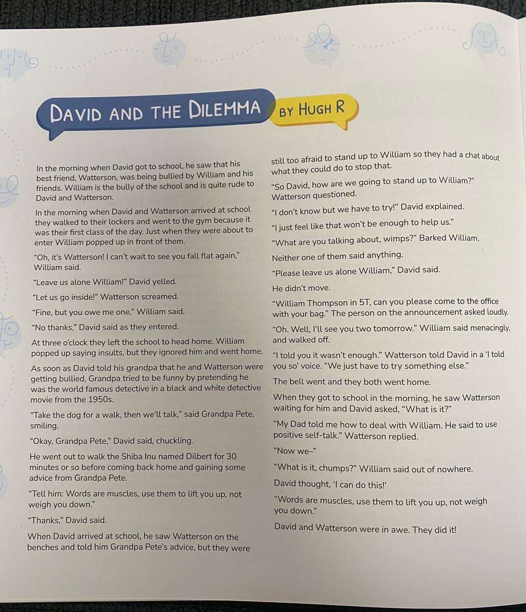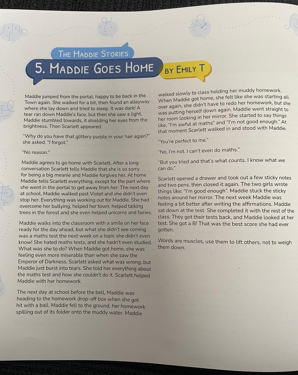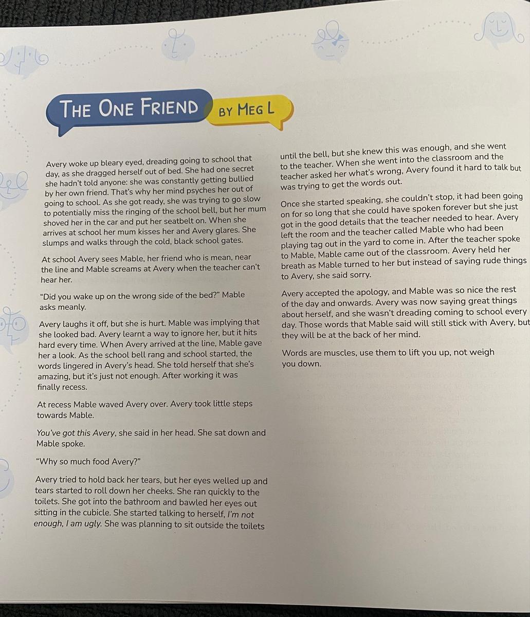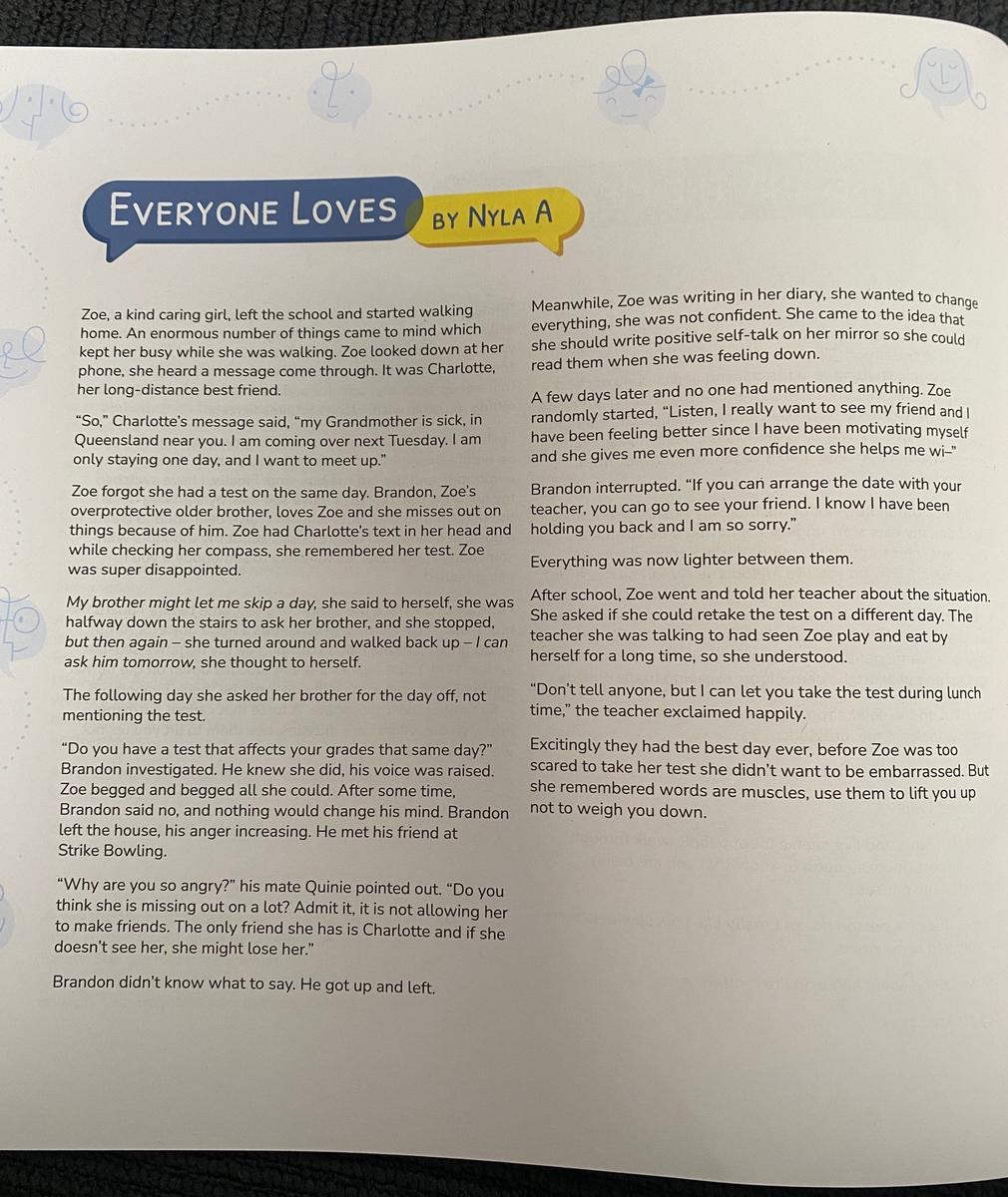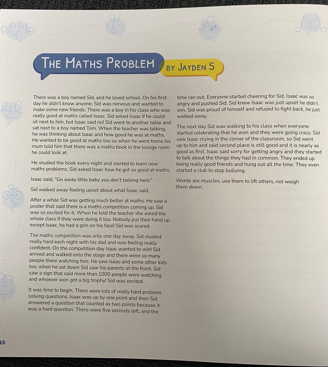 We are excited to share our student's stories with you below. The published book (seen in the picture)is also available in Bayside libraries and our school library.