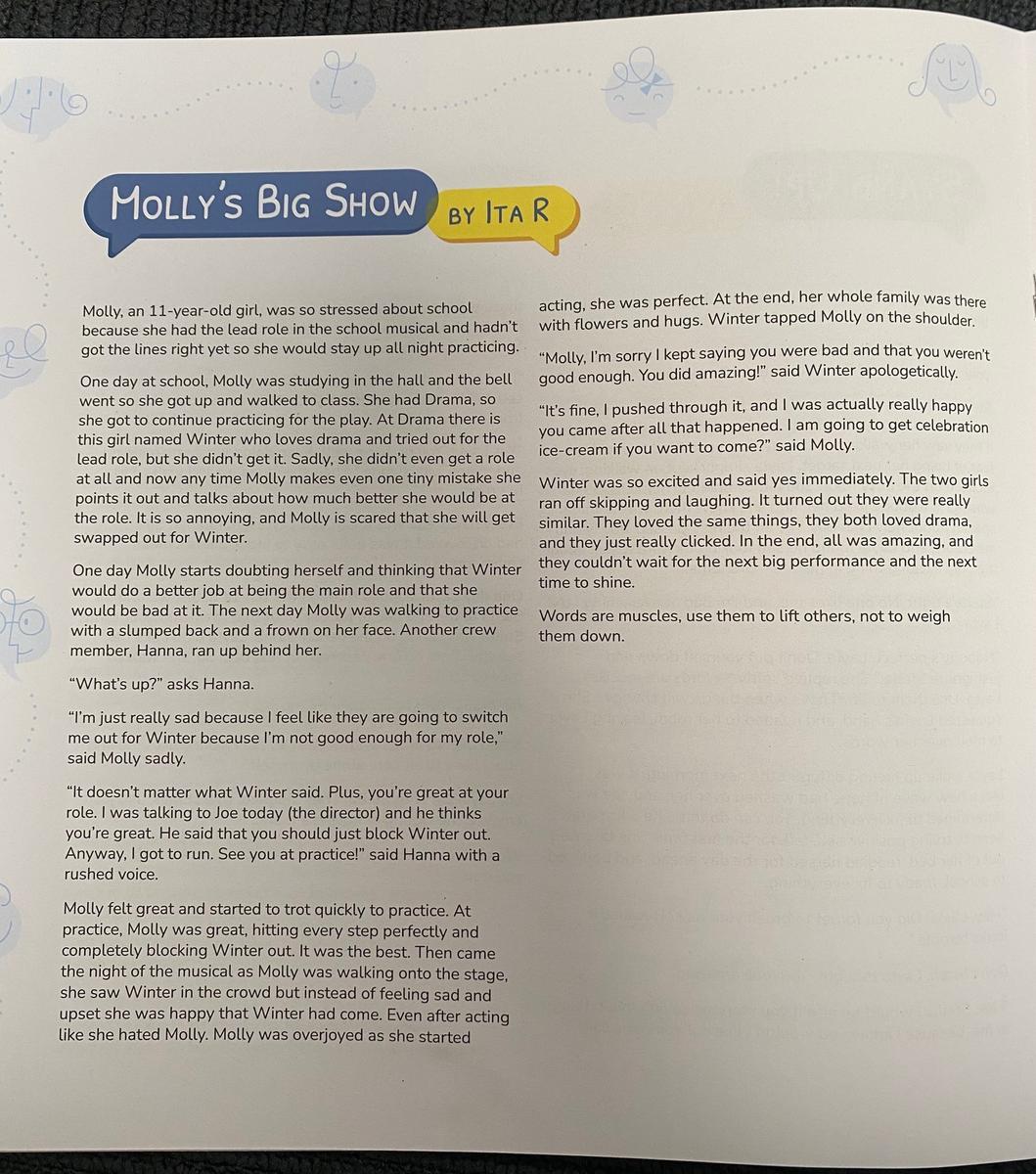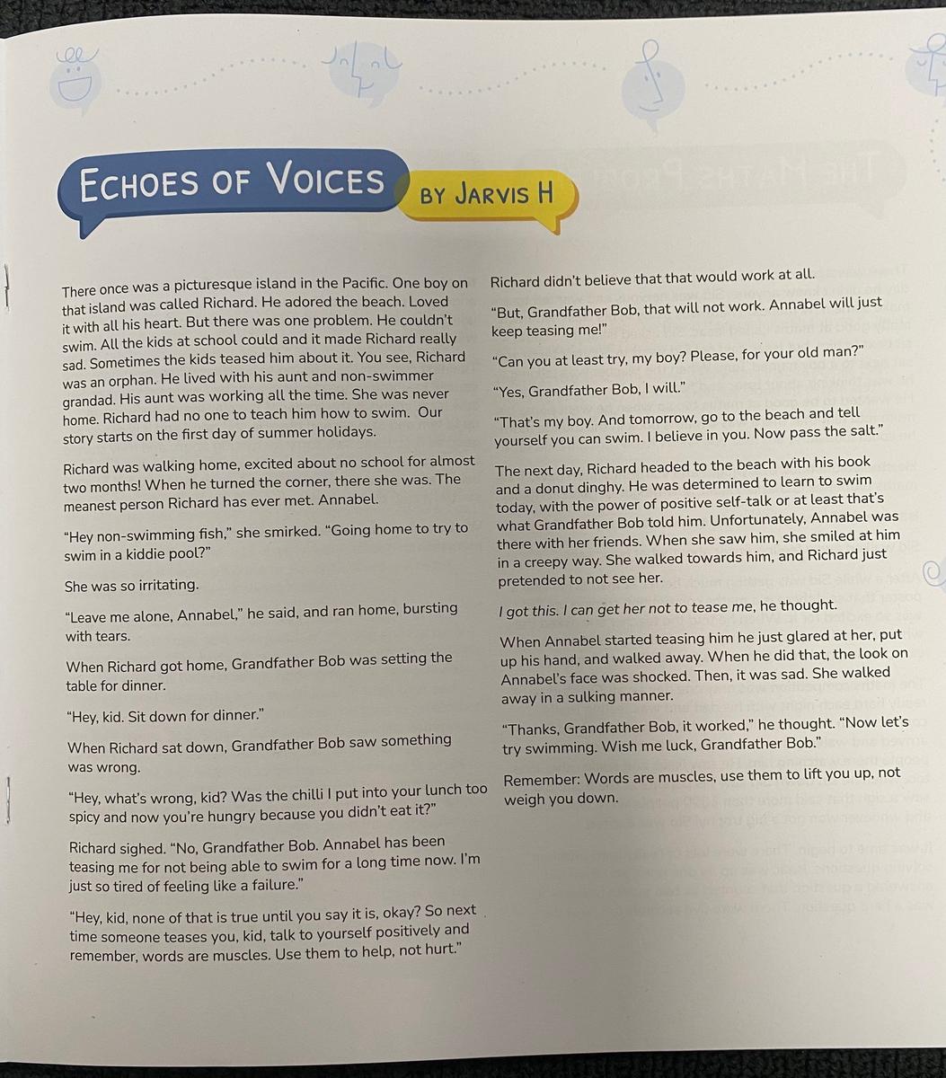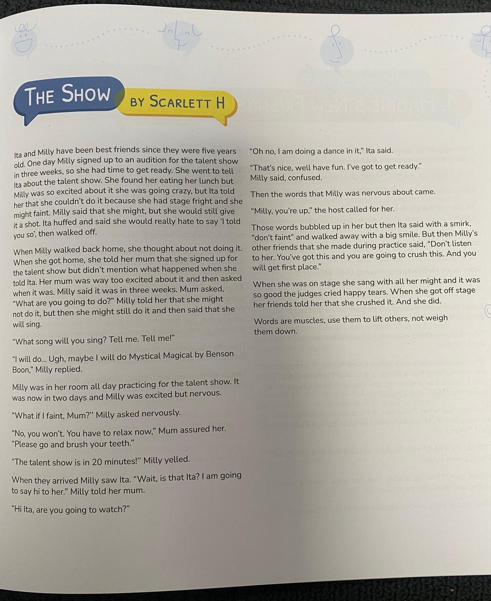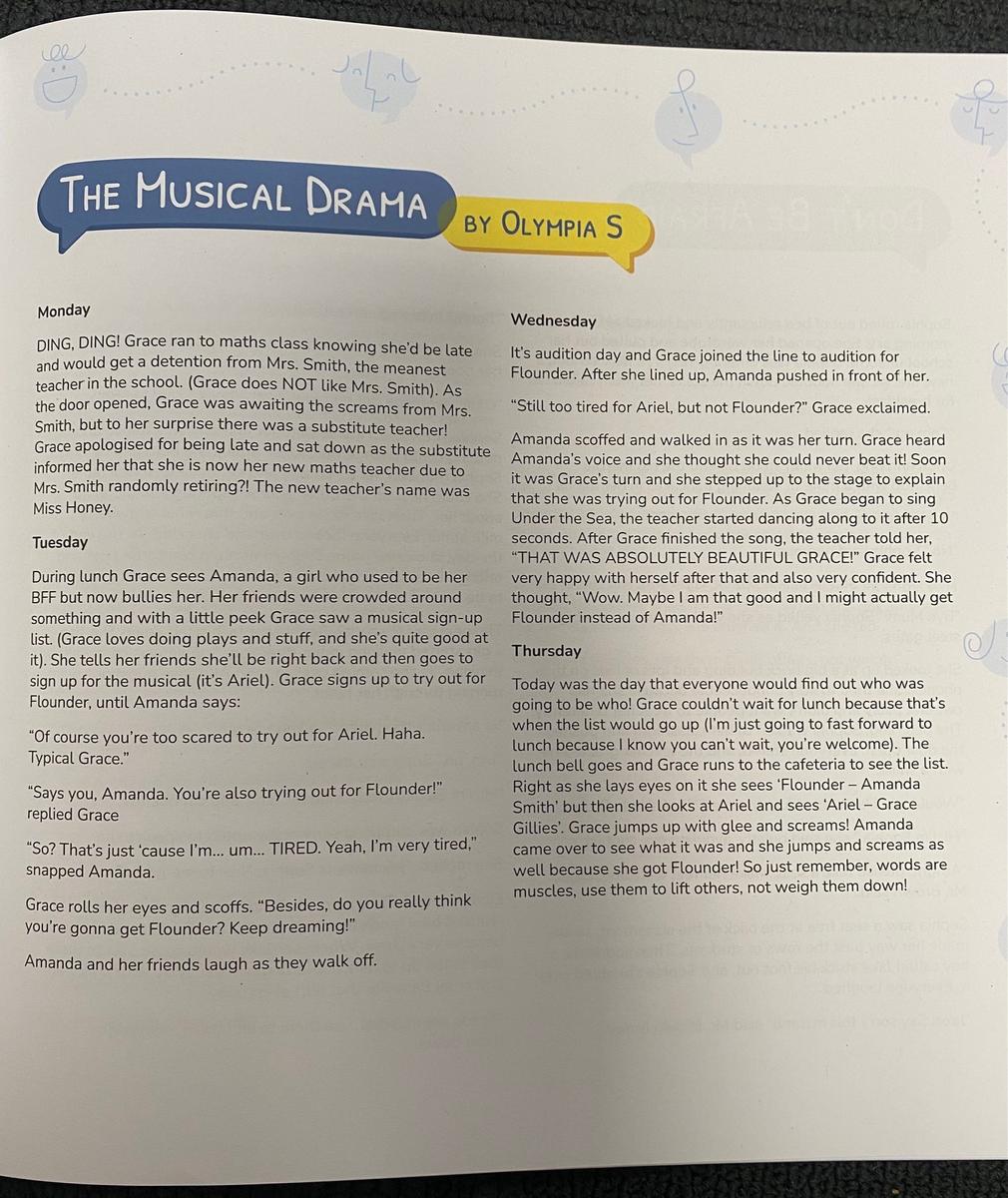 We are excited to share our student's stories with you below. The published book (seen in the picture)is also available in Bayside libraries and our school library.
