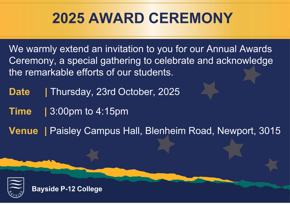 We are pleased to announce that the College Awards Ceremony will take place on Thursday, 23rd October at 3:00pm in the Paisley Hall. You are warmly invited to attend this special event as we celebrate the achievements of our students.