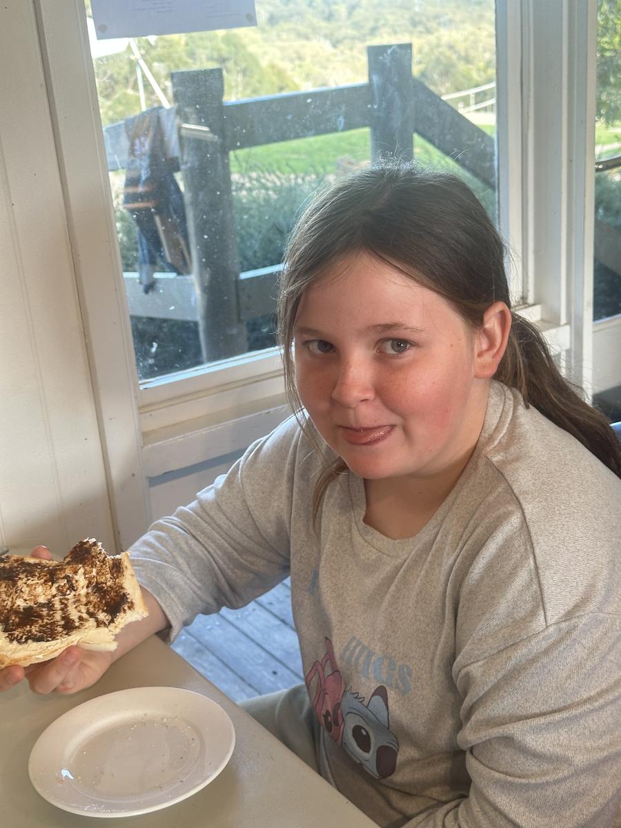 Campers started their day with toast and cereal after cleaning their cabins for room inspections. 🧼