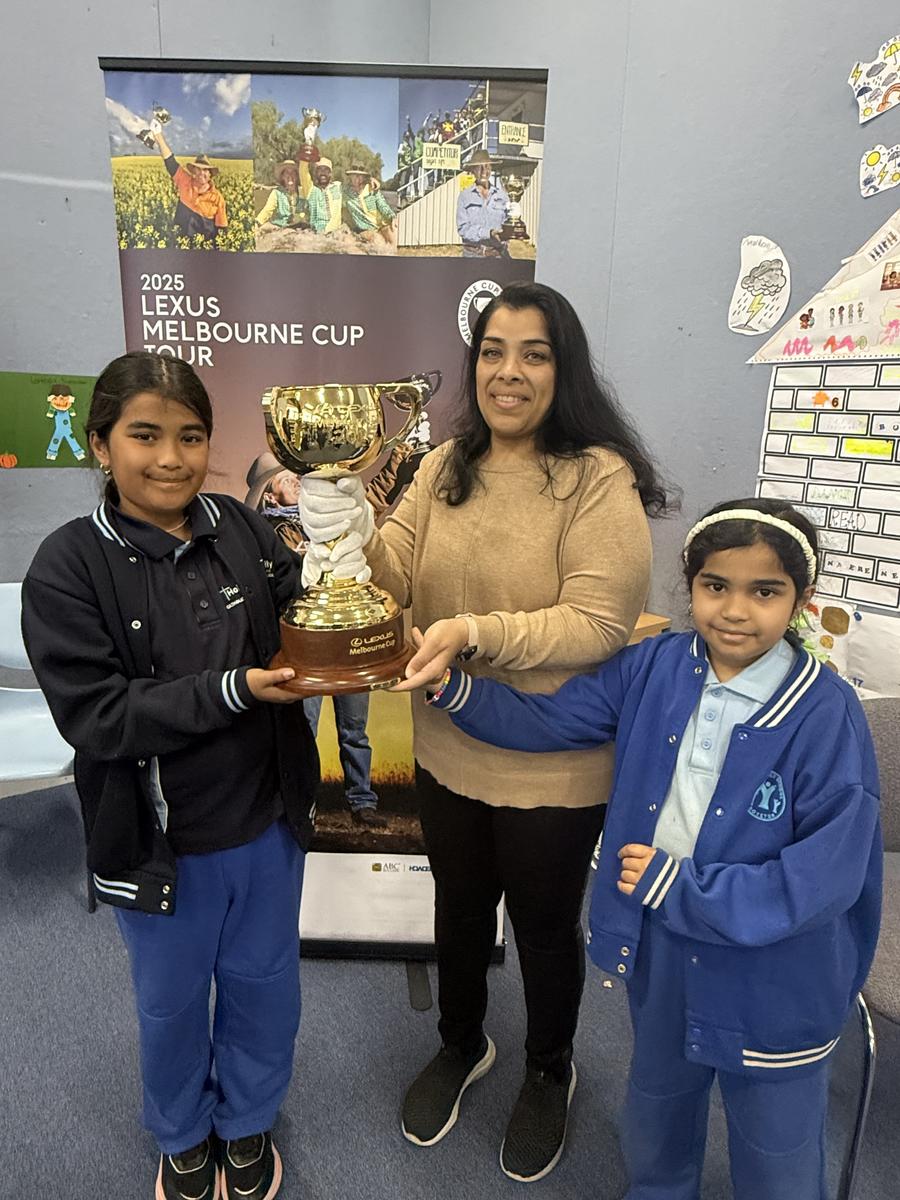 It was wonderful to see the reactions of our children to see the Melbourne Cup yesterday. There were many jaws dropping to see the trophy in person. We had Melbourne Cup winner Shiela Laxon, who spoke to the children about some simple messages: dream big, work hard at what you enjoy and girls can achieve great things. It was beautiful to see many families come and get a family photo with the Cup.