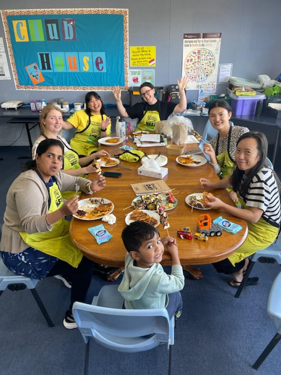 Today we cooked vegetable fritters, made fruit skewers and learnt about the Australian Healthy Eating Guide.