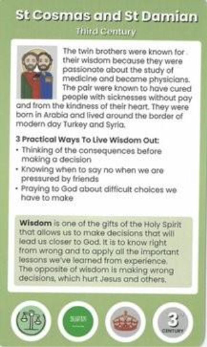 This week’s Saint Hero was St John Paul II who displays the value of Faith. Next week’s Saint Hero will be St Cosmas & St Damian who displays the value of Wisdom. We encourage you to discuss each Saint and their value with your child/ren, helping them to learn how they can live out our Christian values.