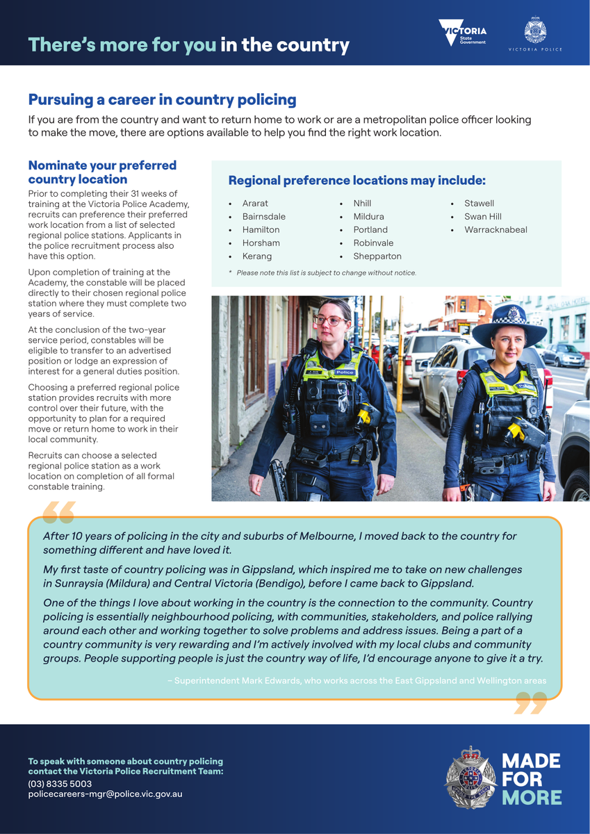 If you would like more information regarding joining the Police Force see Mitch McAlpine