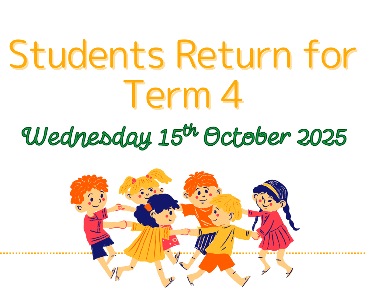 All students return to school on Wednesday 15th October for their first day of Term 4.