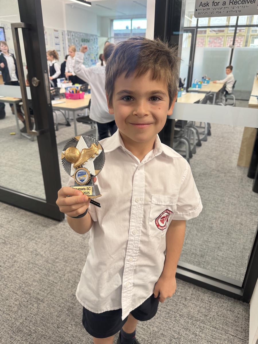 Louie proudly brought in his soccer trophy and has asked for this special photo opportunity to be shared at assembly this week. Another wonderful achievement!