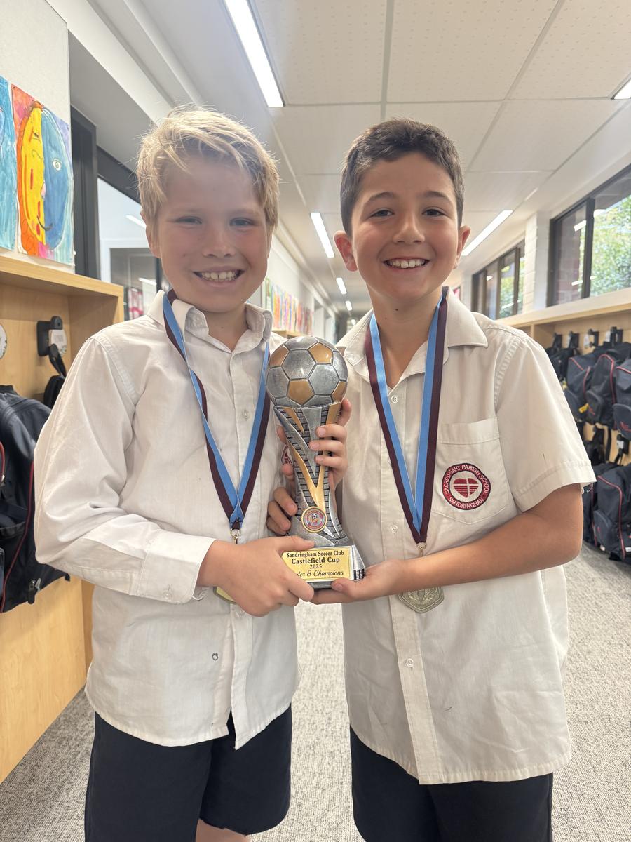 Thomas and Seb were selected to represent the Sandringham Soccer Club in the U8 Boys team. The boys were understandably very proud of themselves and their teammates and wanted to share the trophy with his class, Mrs Stroud and Mr Collis.