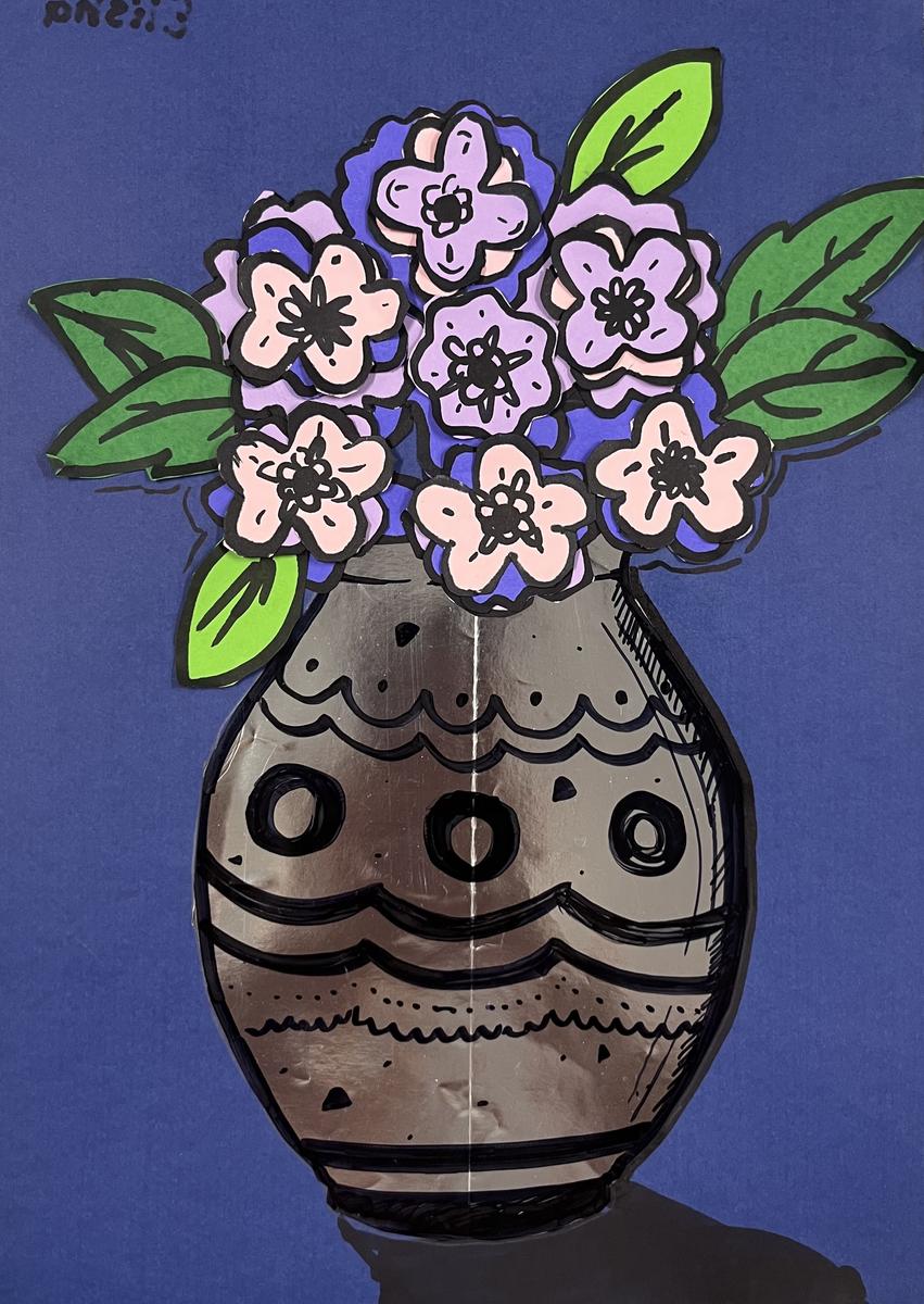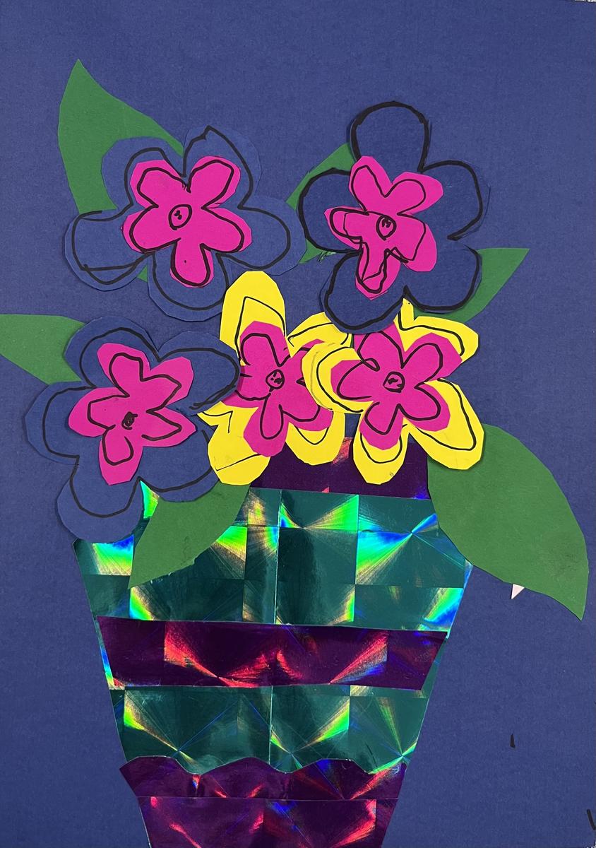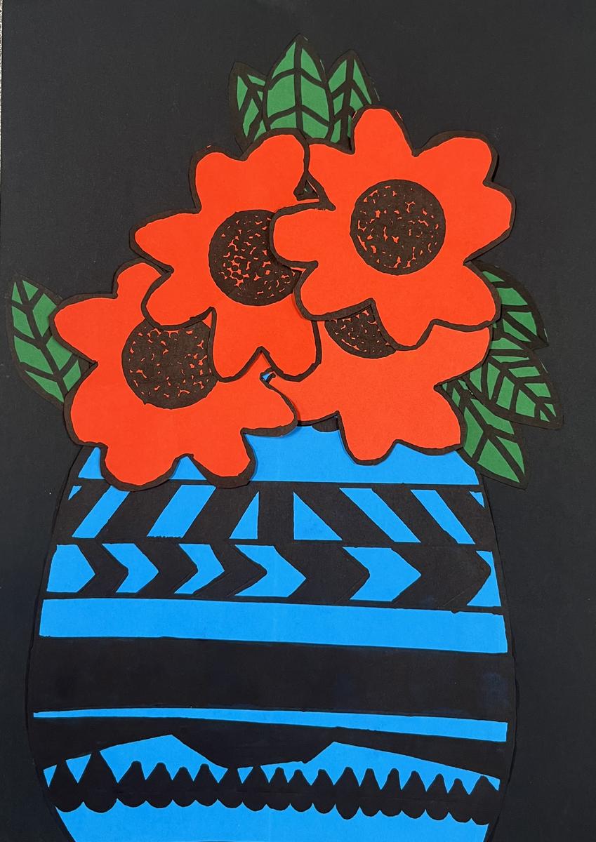 Miss Weeks' Year 7 Art and Visual Communication class explored the artist Margaret Preston by creating their own collaged flower vases with bright colours and bold lines.
