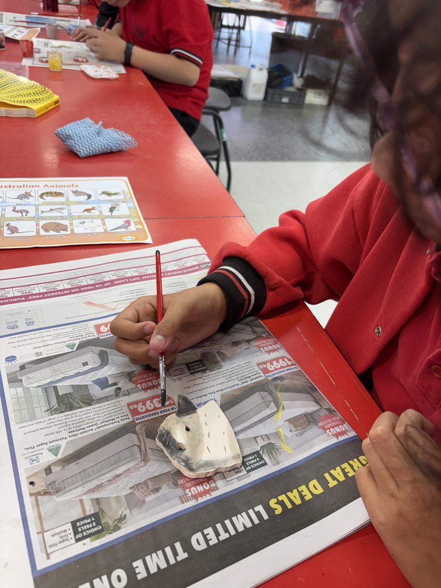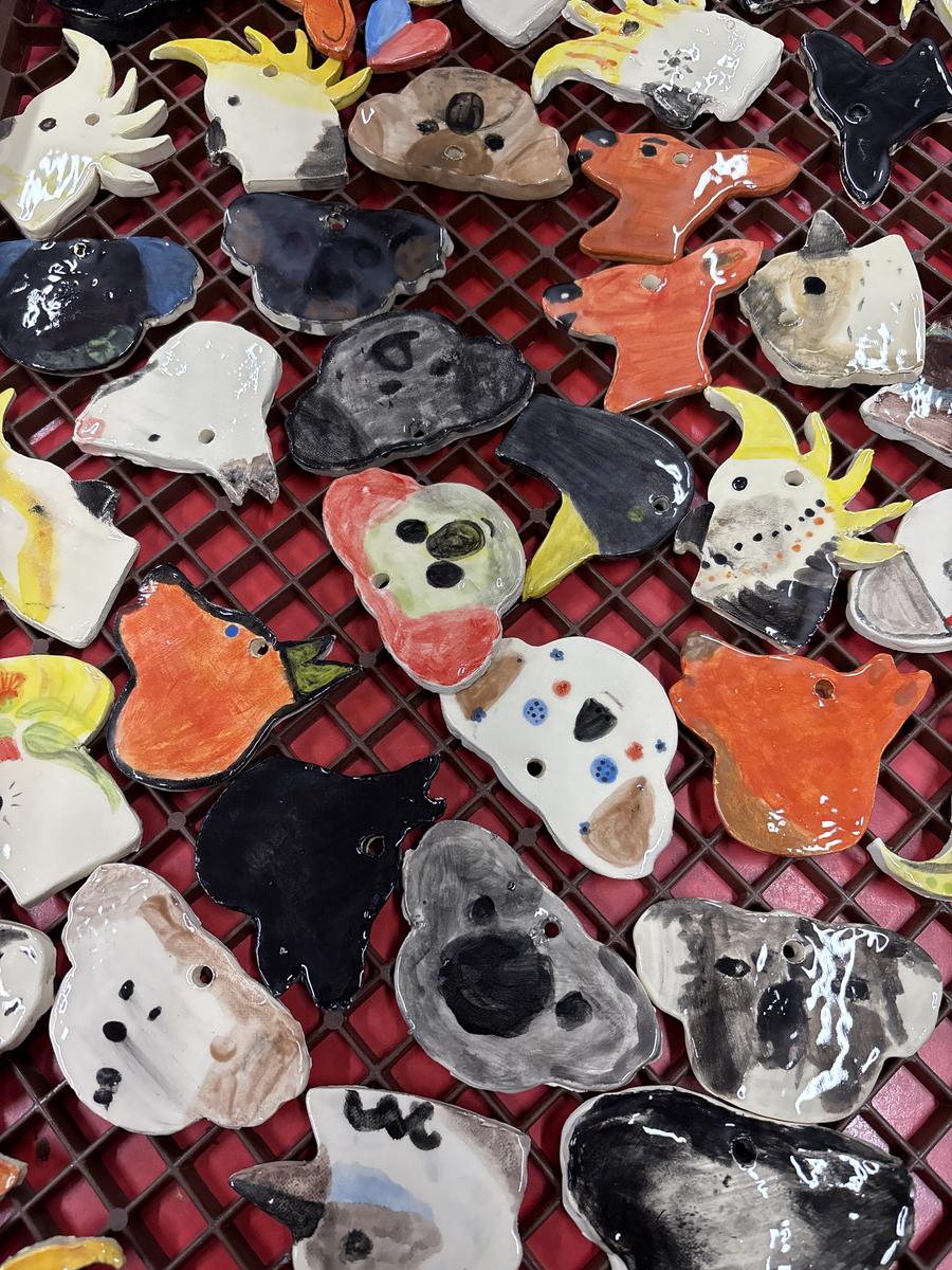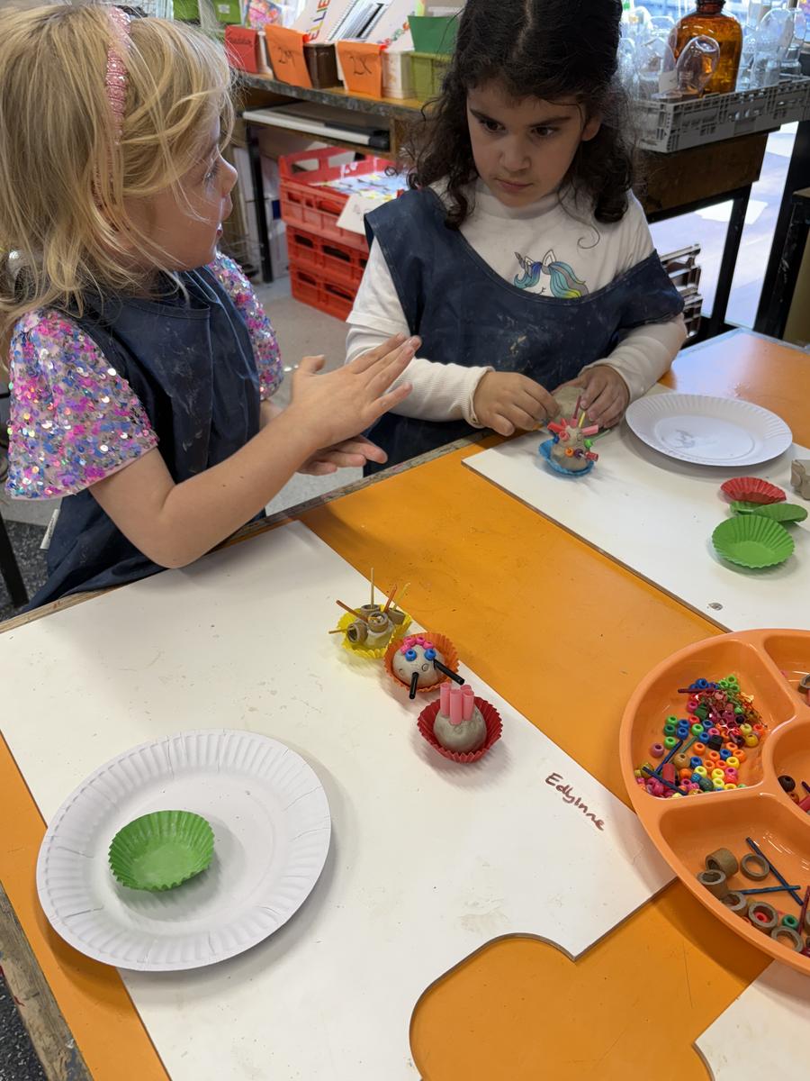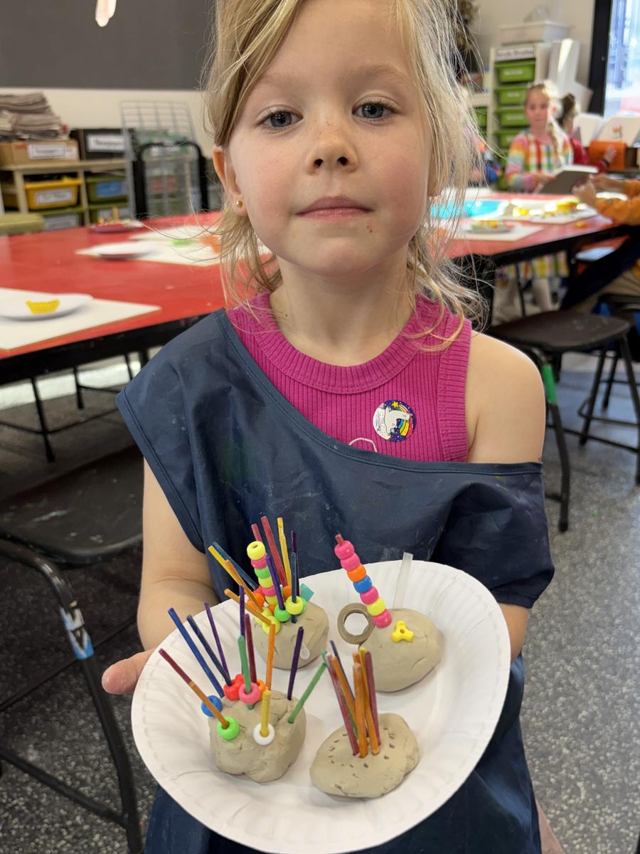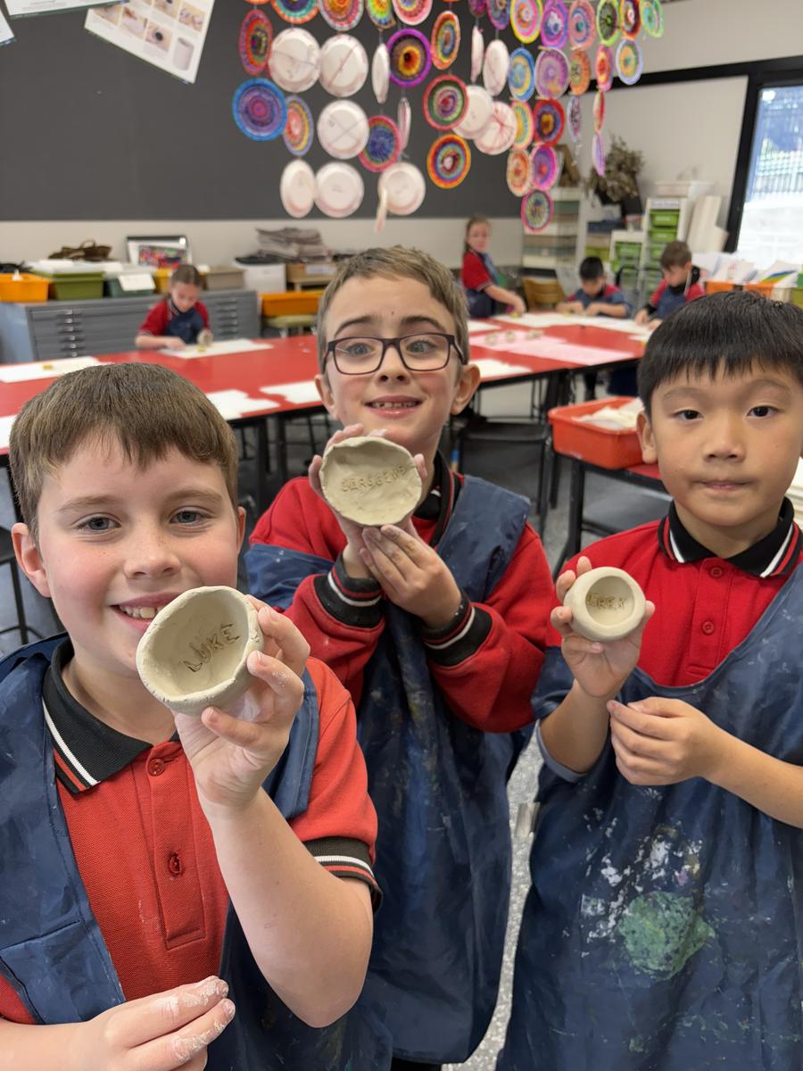 My favourite thing to do on a cold winter’s morning, is to unload the kiln before the students arrive for the day. The kiln is still warm from the previous days firing and when I open the door, it’s like opening a treasure box for the first time, to reveal the wonderful creations inside. This week, we have printed leaves and rolled coiled worms with grade 1, underglazed our Aussie Animal medallions with grades 3-6 and pinched personalised pots with grade 2. The Foundation students celebrated 100 Days Brighter by making and decorating clay cupcakes. They were so keen to take them home to share their creations!