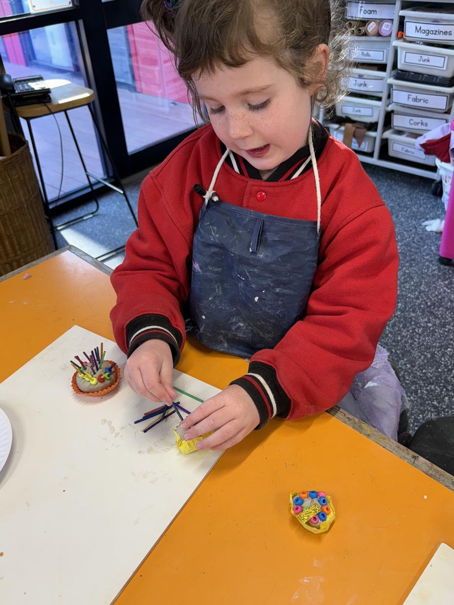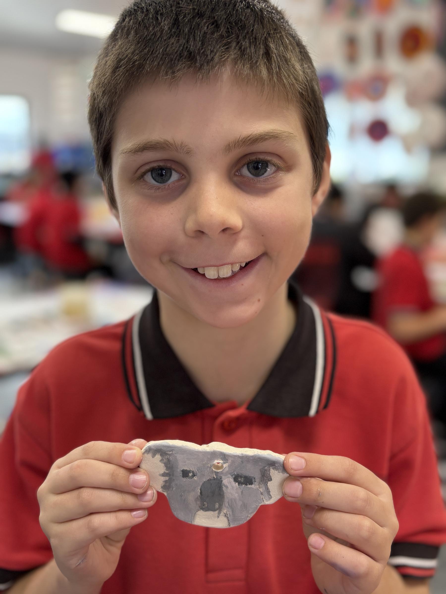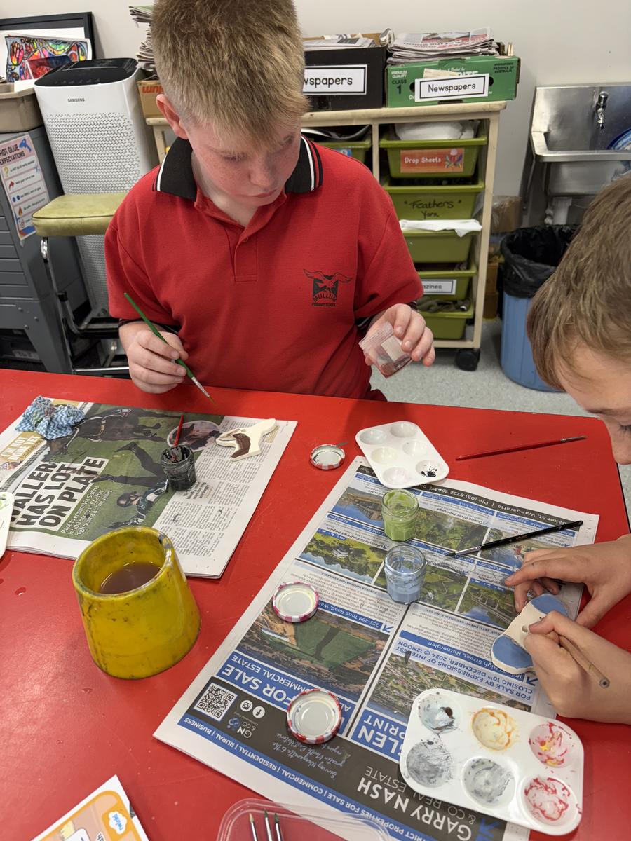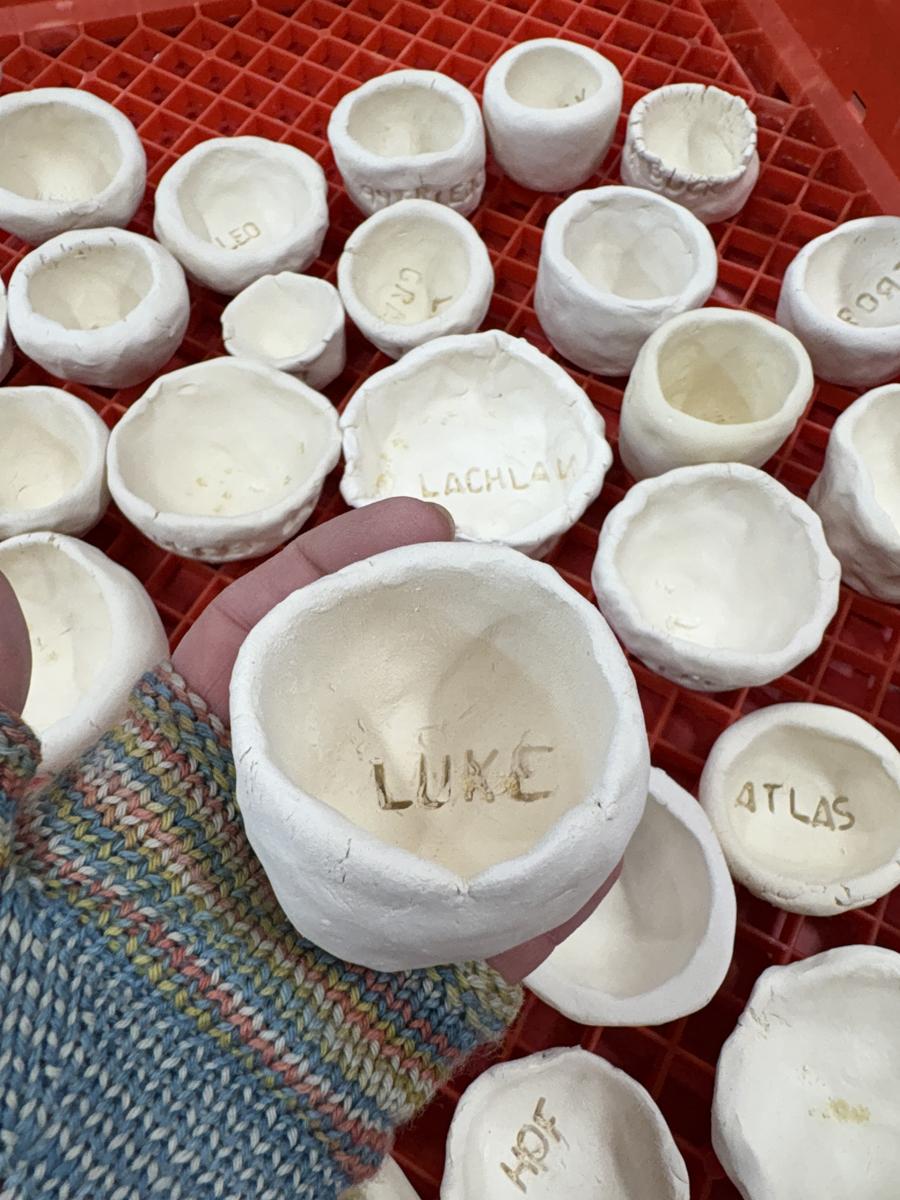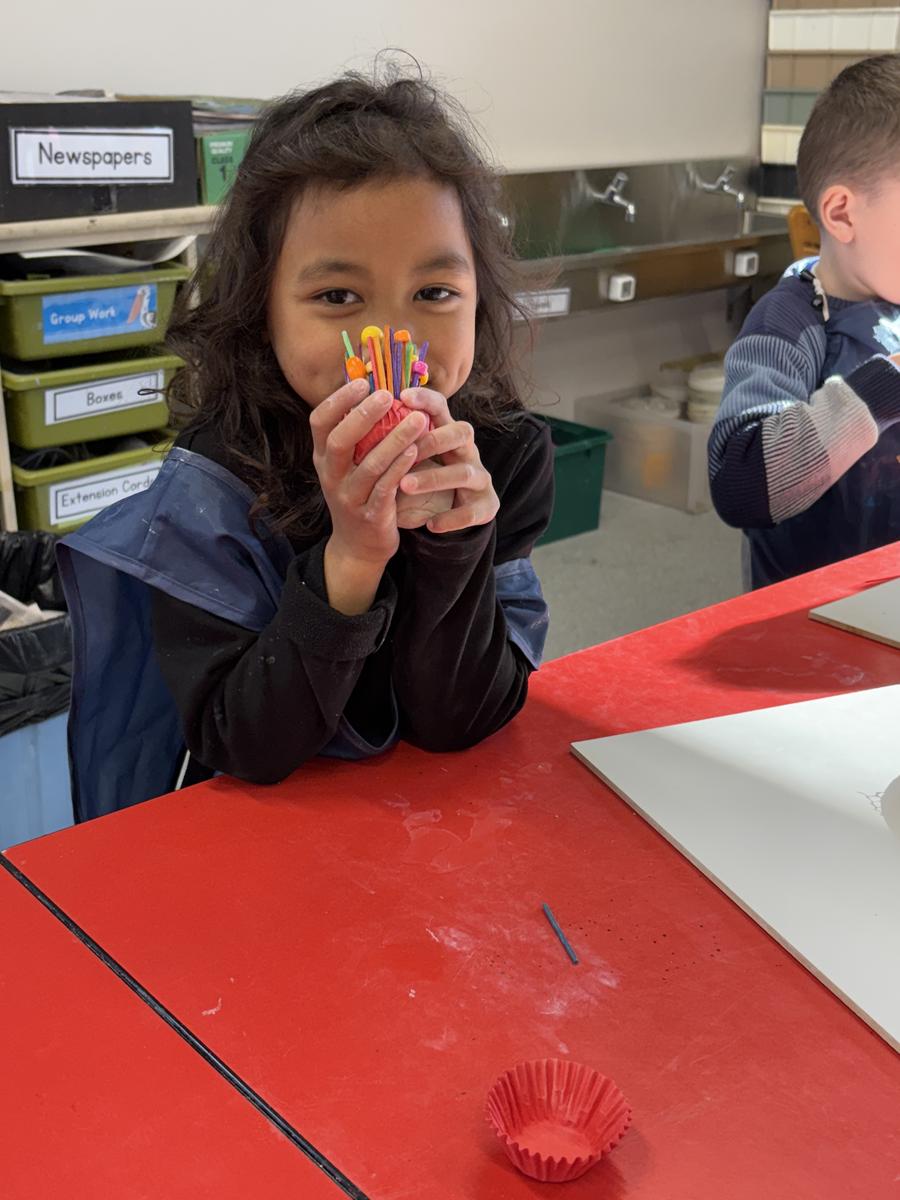 My favourite thing to do on a cold winter’s morning, is to unload the kiln before the students arrive for the day. The kiln is still warm from the previous days firing and when I open the door, it’s like opening a treasure box for the first time, to reveal the wonderful creations inside. This week, we have printed leaves and rolled coiled worms with grade 1, underglazed our Aussie Animal medallions with grades 3-6 and pinched personalised pots with grade 2. The Foundation students celebrated 100 Days Brighter by making and decorating clay cupcakes. They were so keen to take them home to share their creations!