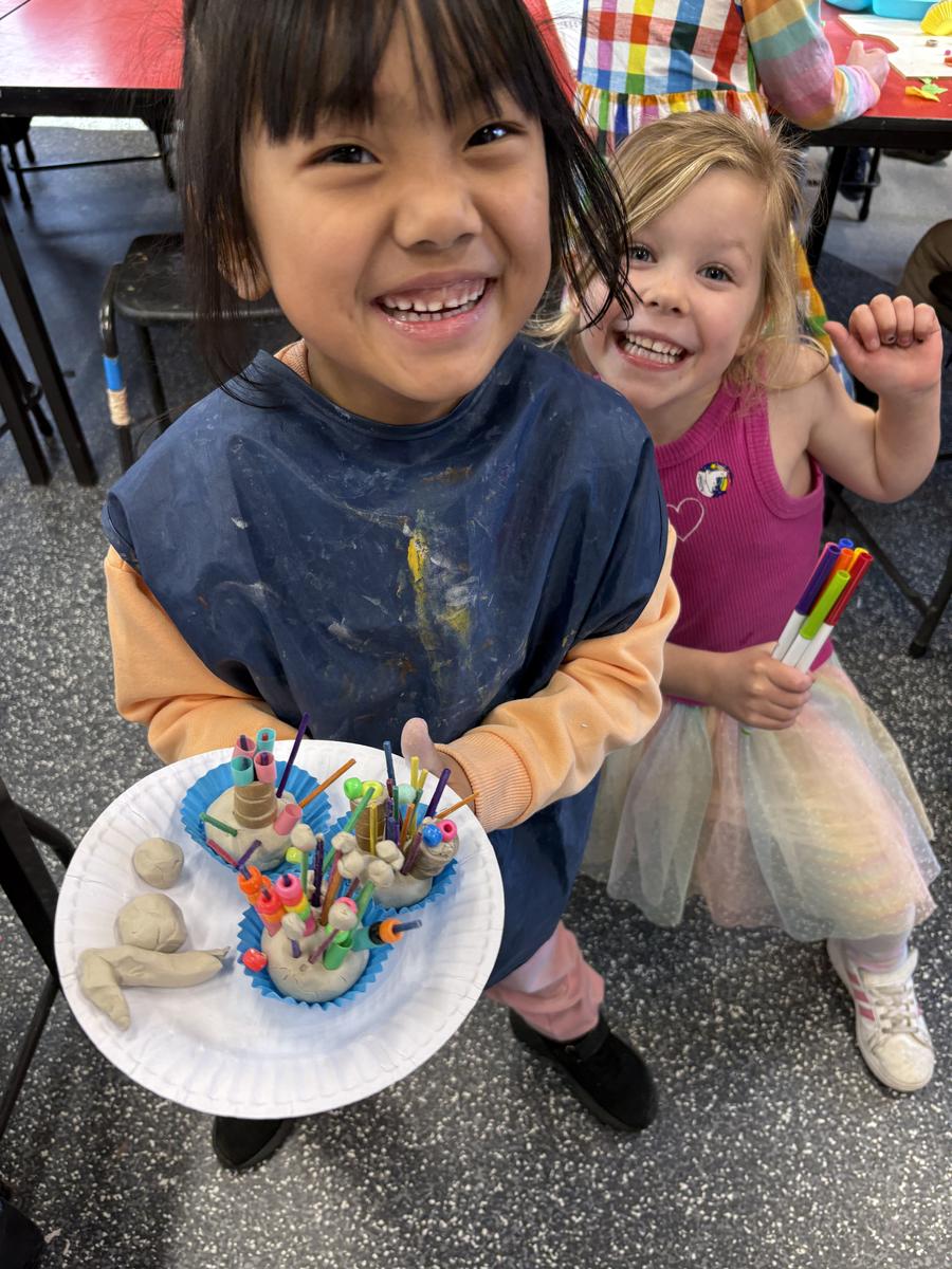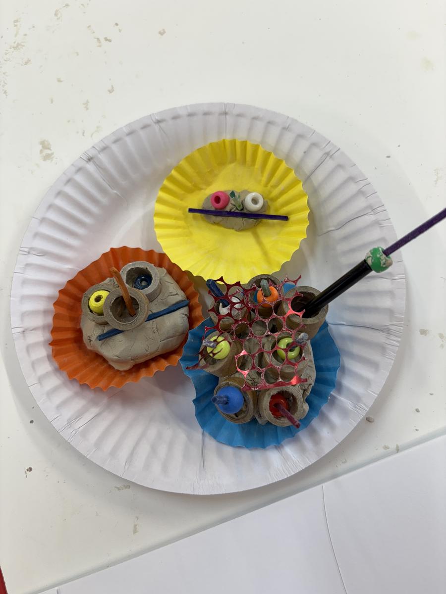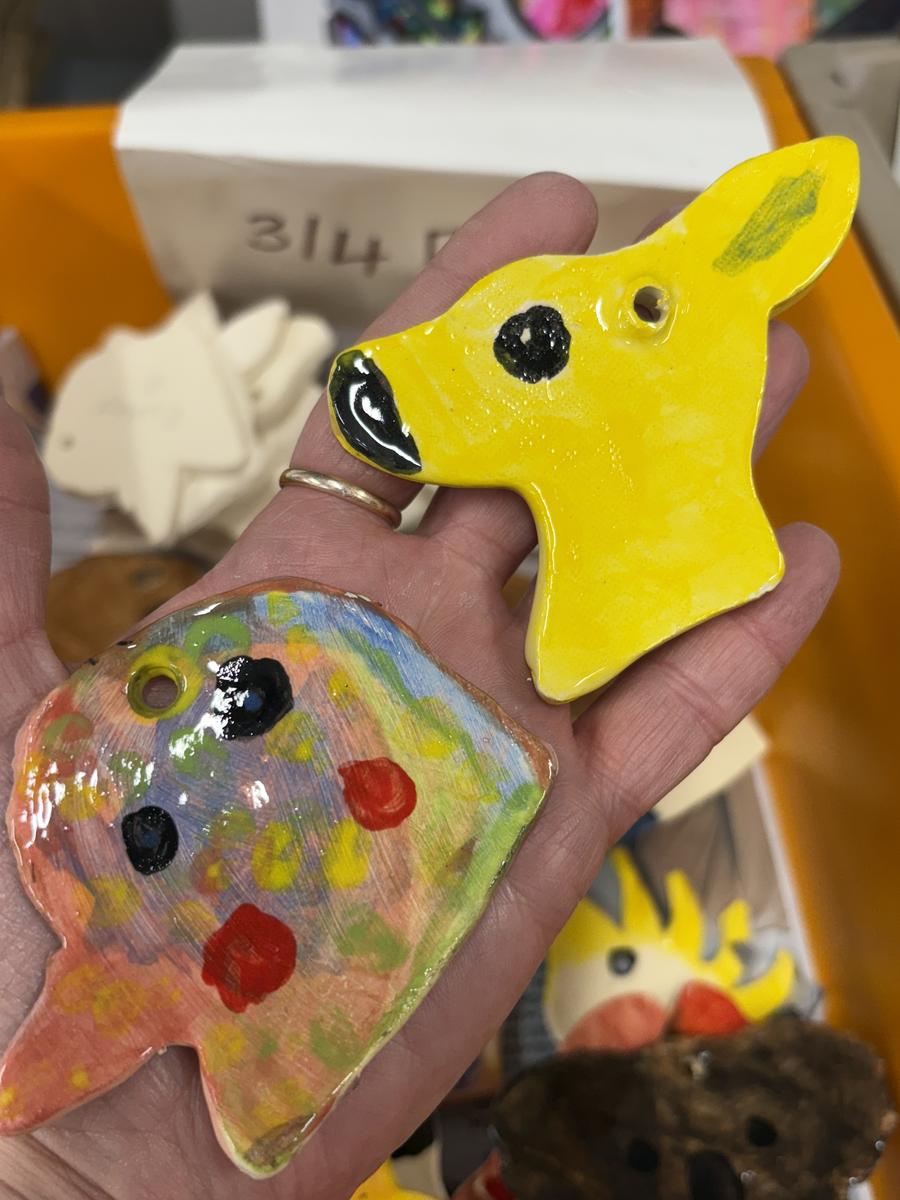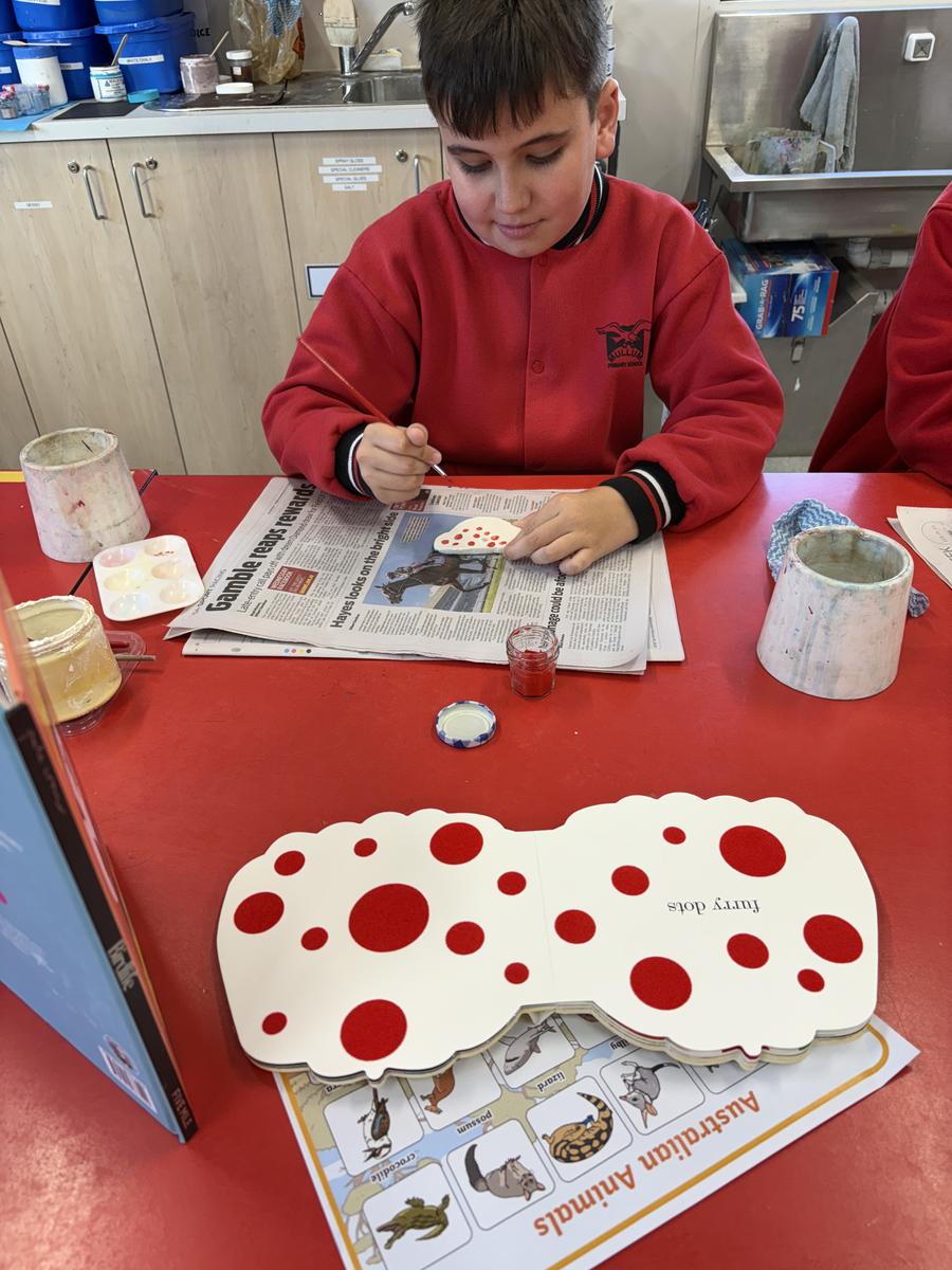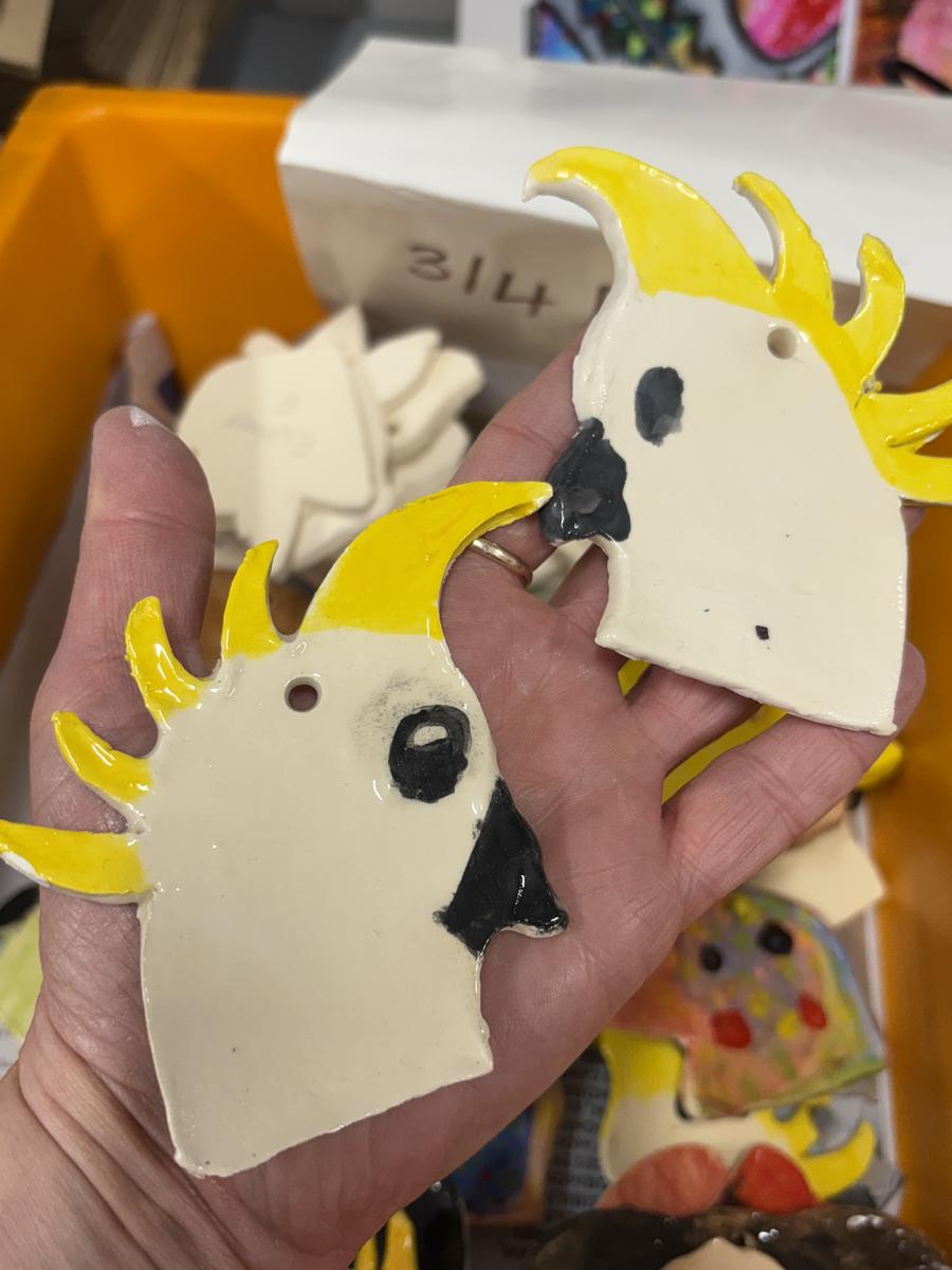 My favourite thing to do on a cold winter’s morning, is to unload the kiln before the students arrive for the day. The kiln is still warm from the previous days firing and when I open the door, it’s like opening a treasure box for the first time, to reveal the wonderful creations inside. This week, we have printed leaves and rolled coiled worms with grade 1, underglazed our Aussie Animal medallions with grades 3-6 and pinched personalised pots with grade 2. The Foundation students celebrated 100 Days Brighter by making and decorating clay cupcakes. They were so keen to take them home to share their creations!