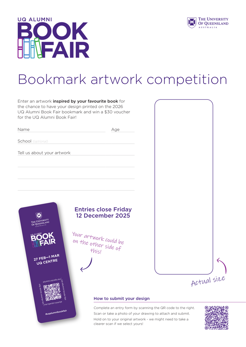 The competition design entry form is attached, which includes instructions on how to submit you entry by Friday 12 December 2025. (Entries are submitted directly to UQ).