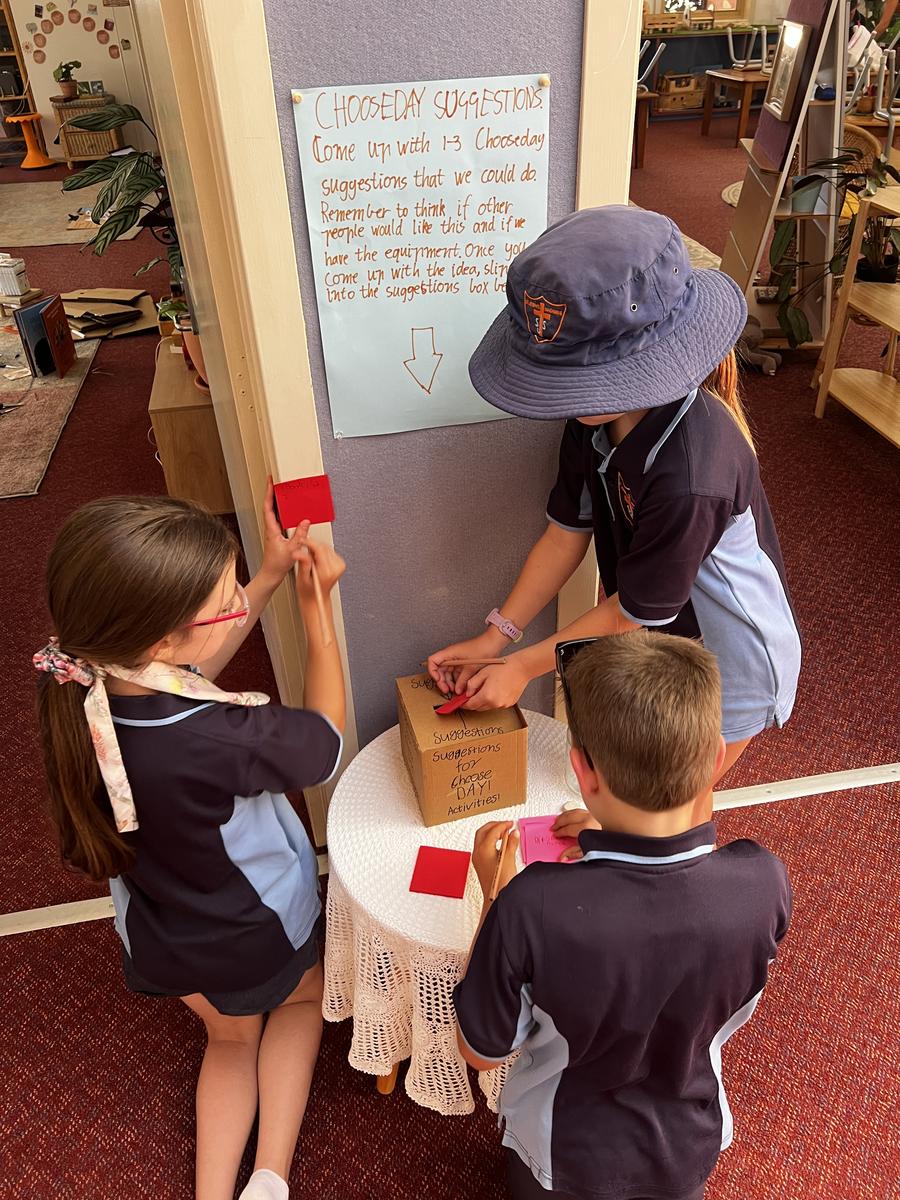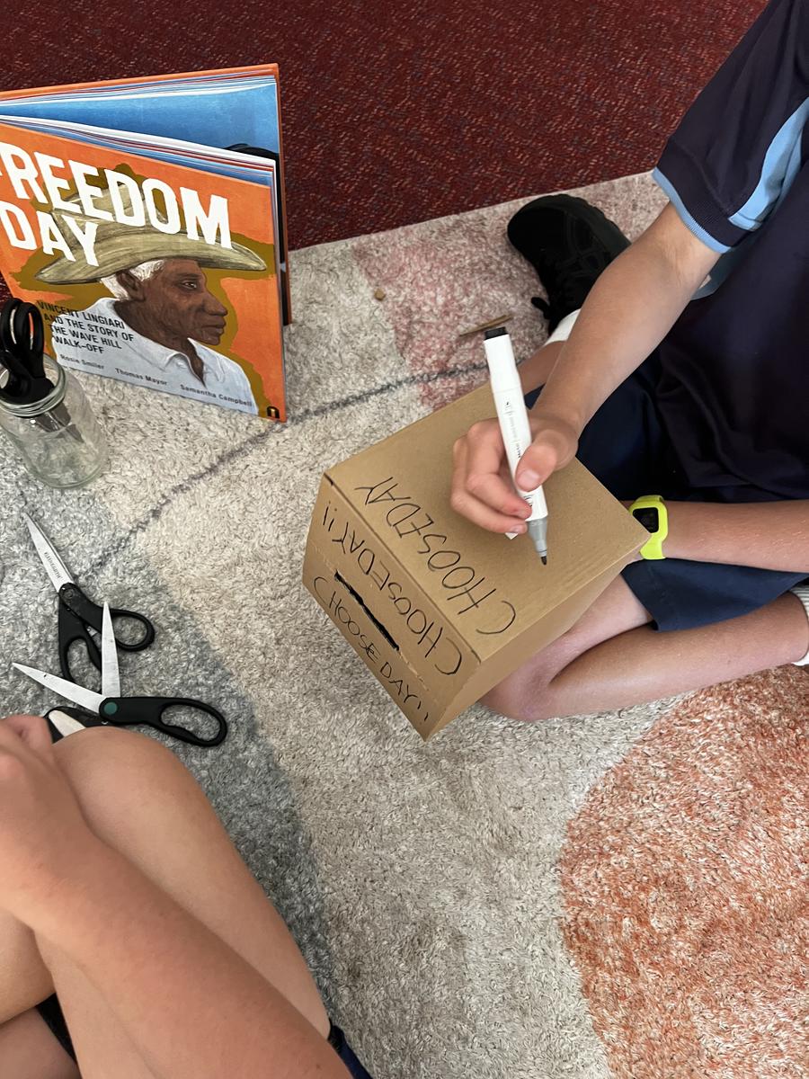 We launched this by exploring democracy, what it is, where it began, and how it works in our country. Learners shared their existing knowledge and expressed their ideas through the 100 languages of learning. Some leartners worked collaboratively to make a ballot box for our Choose Day activity suggestions, some made people paper chains and others created artistic representations of our school logo and parliament house.