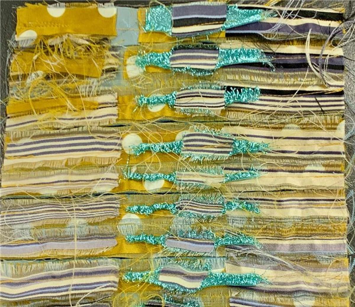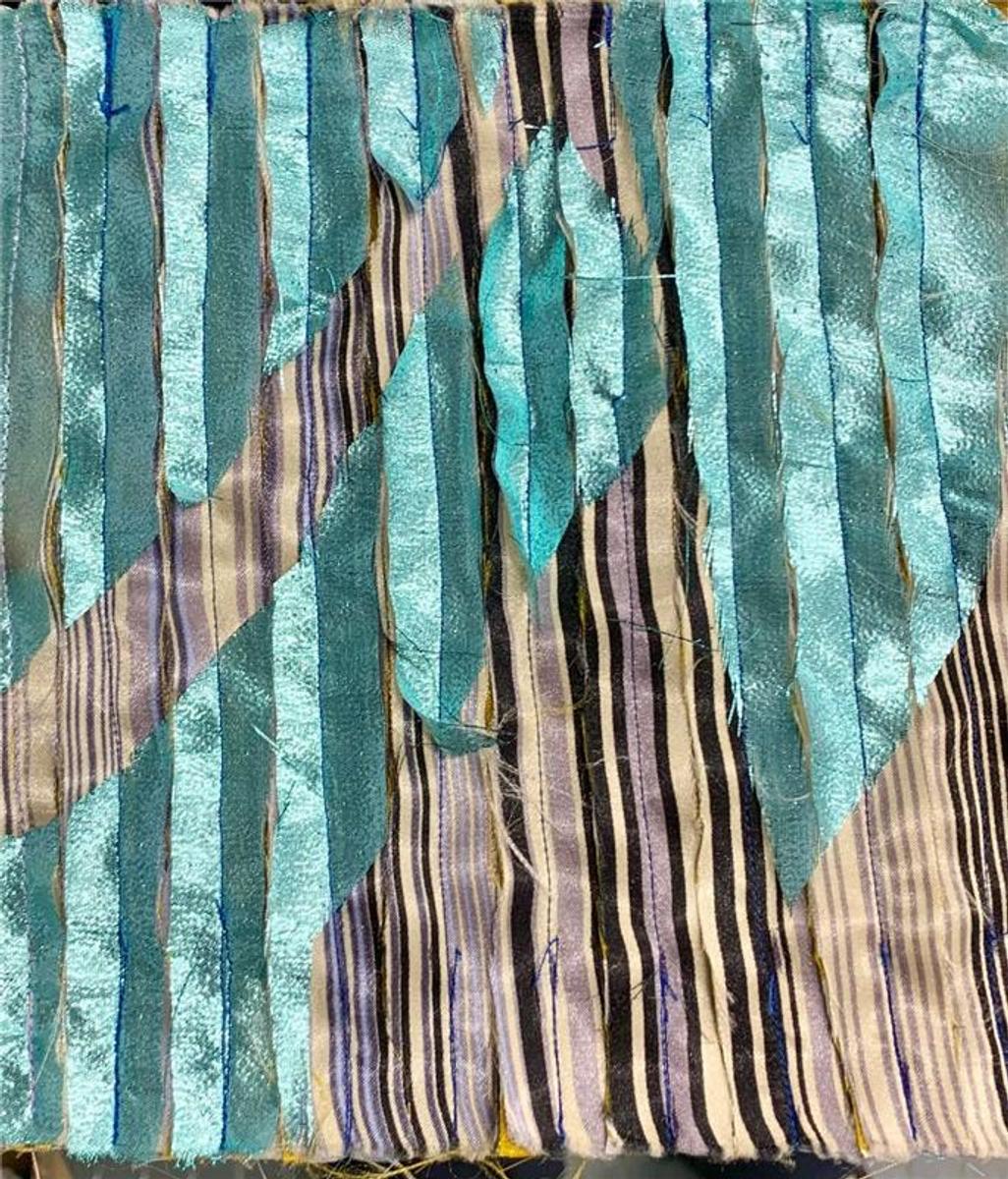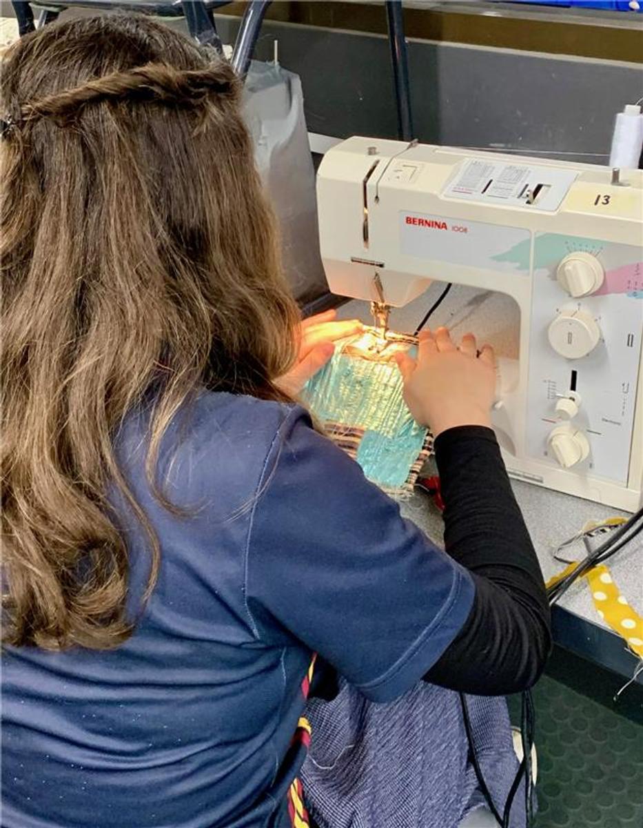 Additionally, they used the Sewing Machine to create a Layered Applique Sample where they experimented with layering old and scrap fabrics, sewing straight stitches through the layers, cutting through it except for the last fabric and finally felting the sample.