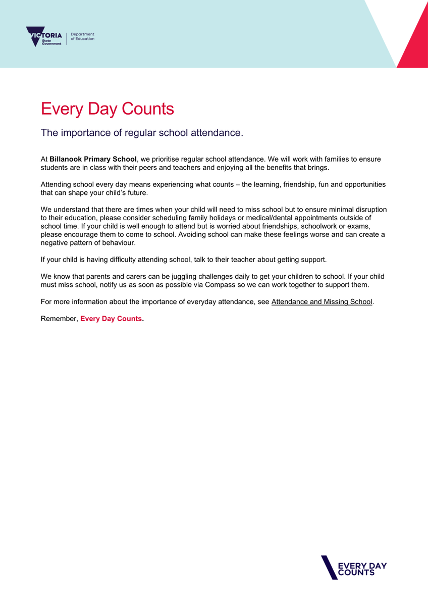 We would like to invite parents/carers to be part of our classroom program again this year. We greatly appreciate your assistance and involvement at Billanook.