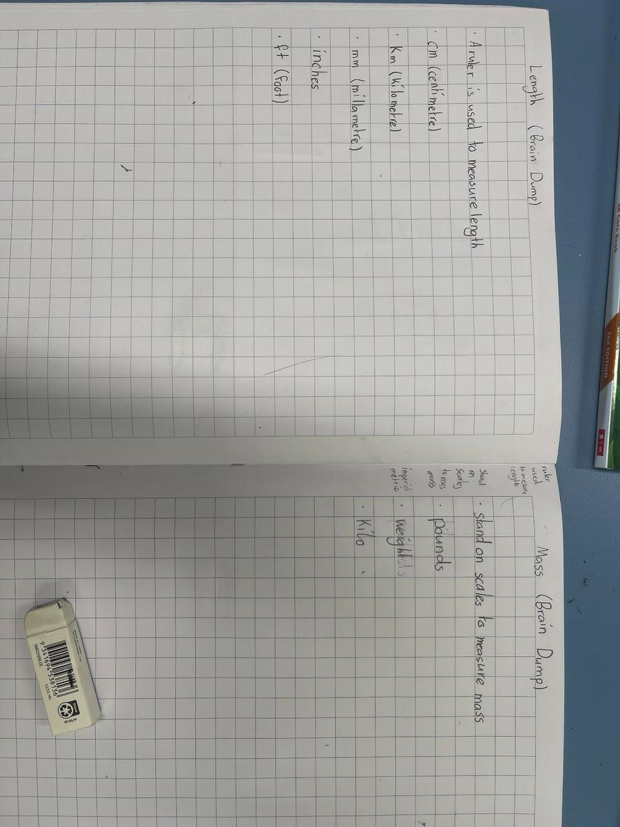 - Understanding millimetres (mm) and kilometres (km) and when to use them, comparing, ordering, adding and subtracting lengths in different units by converting them to a common unit, reading mass using kilograms and grams, and identifying objects that would be measured in grams, choosing the most appropriate unit (g, kg, mm, m, km) for a given measurement