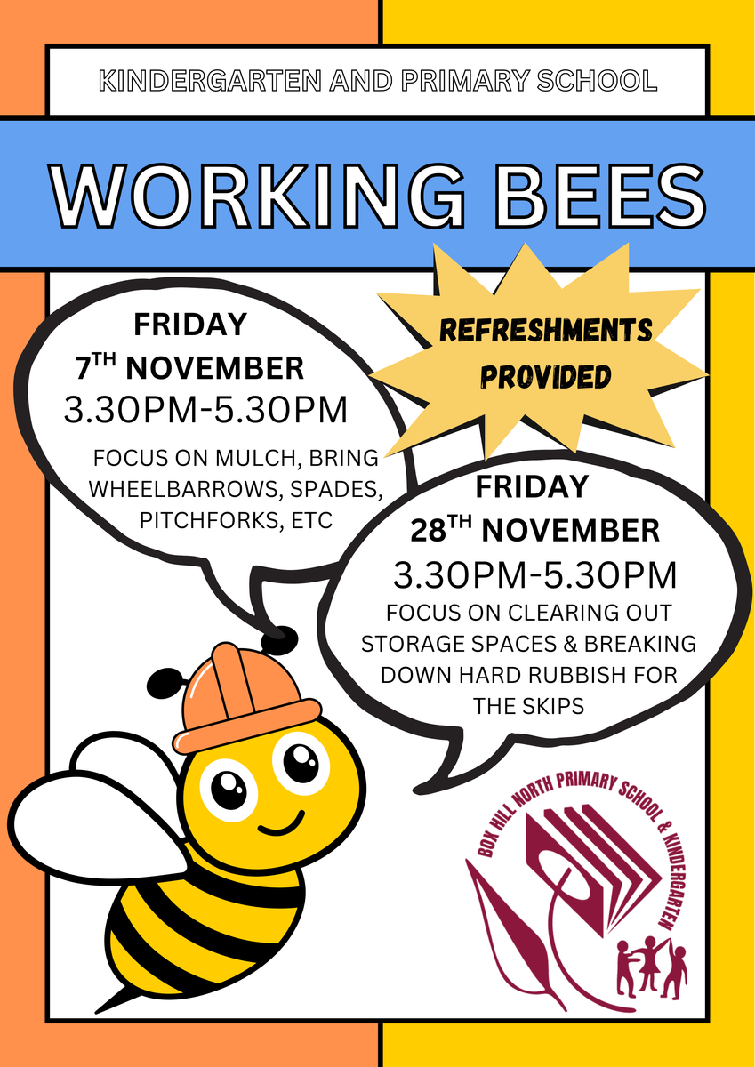 We’re excited to announce two Working Bees this term, and we’d love your help to get a few big jobs done in the school and kindergarten grounds before the end of the year!