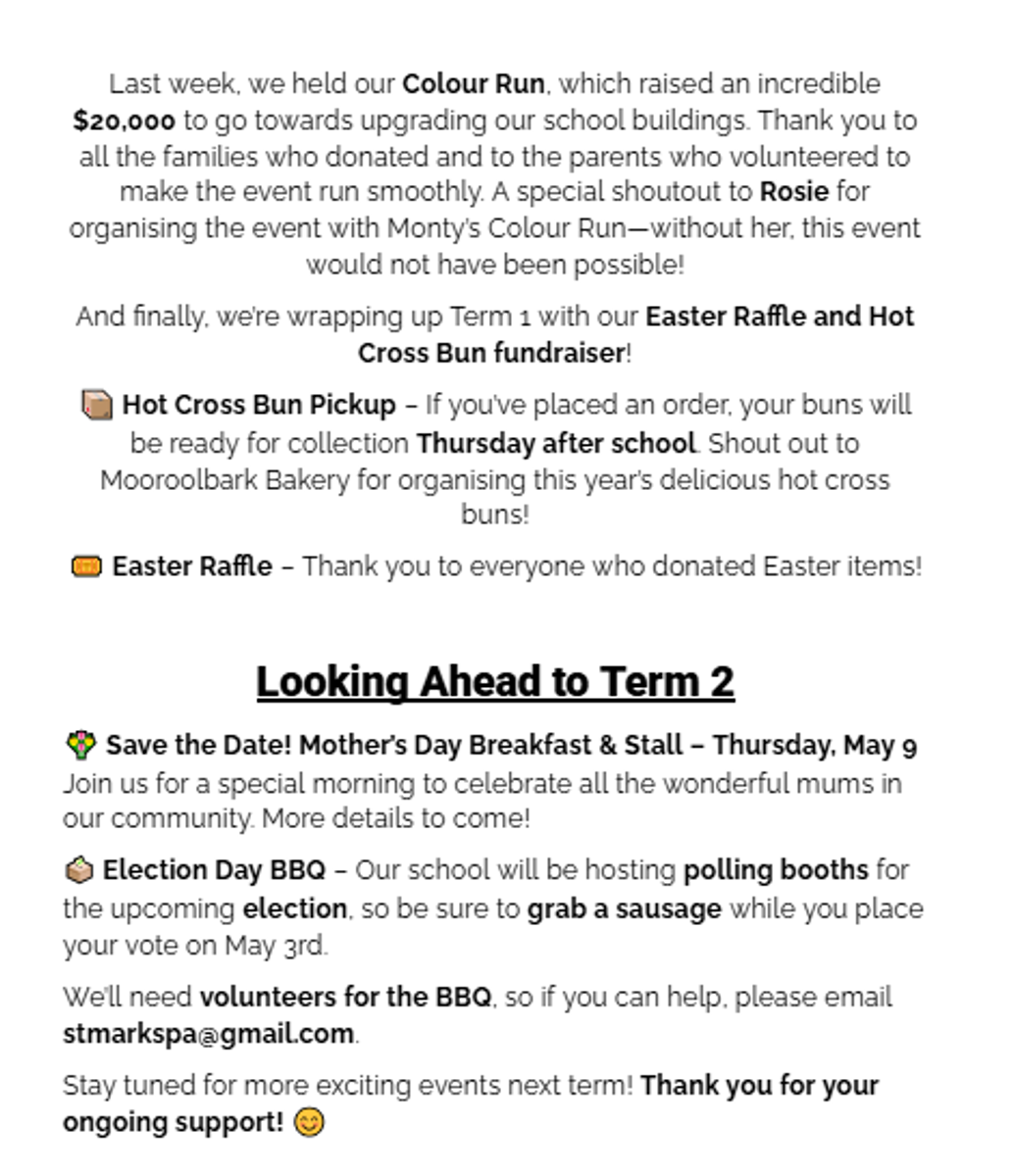 Second hand uniform is available from the school office when needed. We have quite a bit of good stock at the moment so please come in and make use of this affordable option for purchasing extra uniform items. , Temporary Changes to Trading Hours for School Holidays, Notice of Stock Shortages, School Shirts with St Mark's Logos