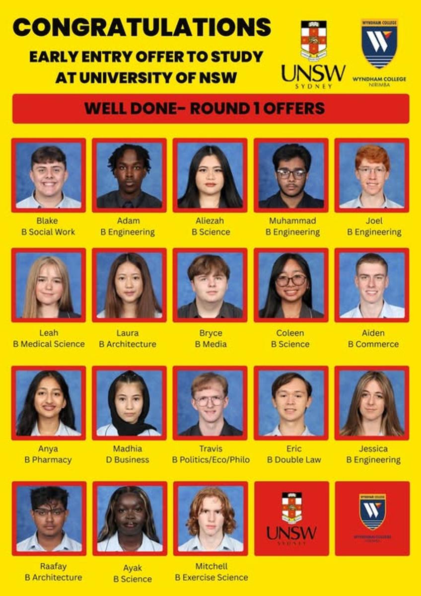 We are delighted to share the Round 1 UNSW Gateway offers that Wyndham College students have recently received.