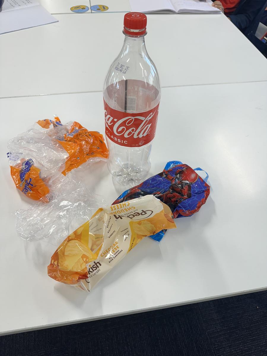 In Inquiry, students began with provocations to spark curiosity about materials—their origins, uses and the properties that make them fit for purpose. They compared materials closely, considering features such as strength, flexibility and waterproofing to determine which were best suited to particular tasks, and linked their conclusions to their written justifications. We also invited students—and, in turn, our Year 2 families—to collect and send in clean, dry 1.25 L and 1.5 L plastic bottles, along with clean, dry, crumb-free non-recyclable wrappers, to support the final product of our Inquiry unit.