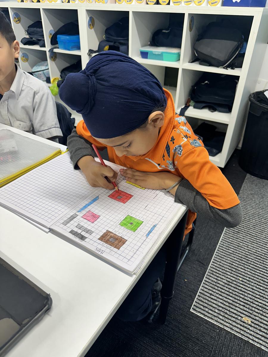 In Maths, students worked with fractions—halves, quarters and eighths. They identified why equal parts matter, labelled numerators and denominators, shaded shapes to represent parts of a whole, and recognised useful equivalences such as 1/2 = 2/4 = 4/8. They then shifted to maps, locations and directions, interpreting simple maps, using positional language, and following and giving directions to solve practical challenges.
