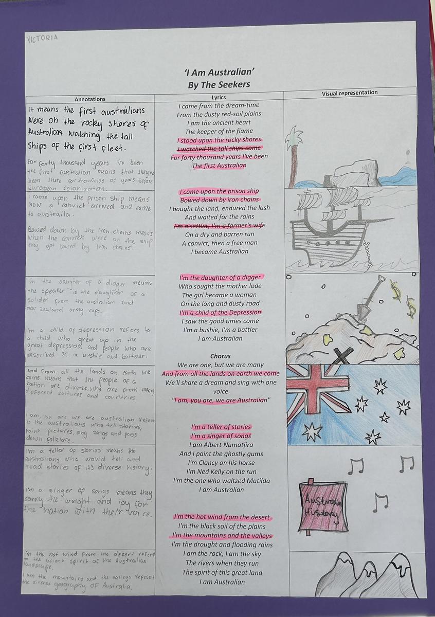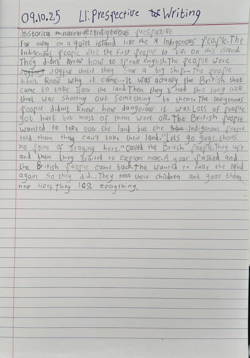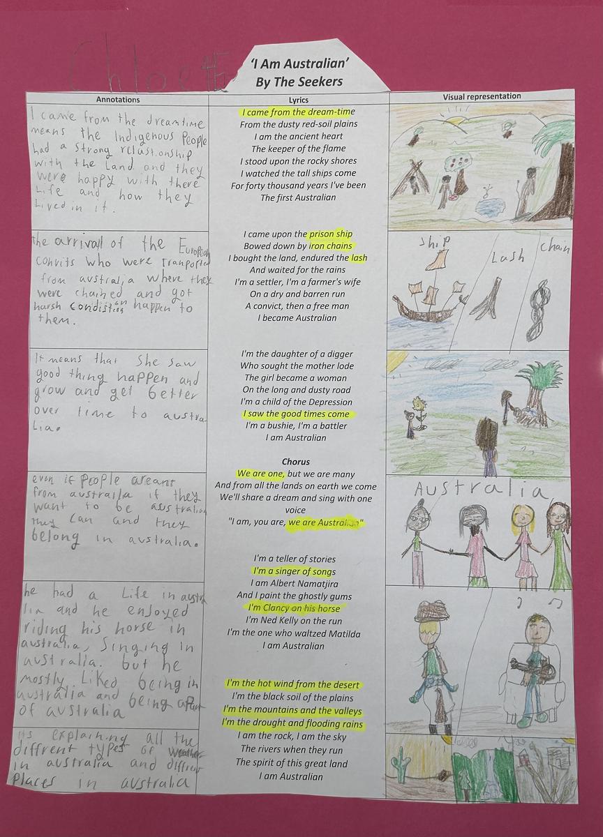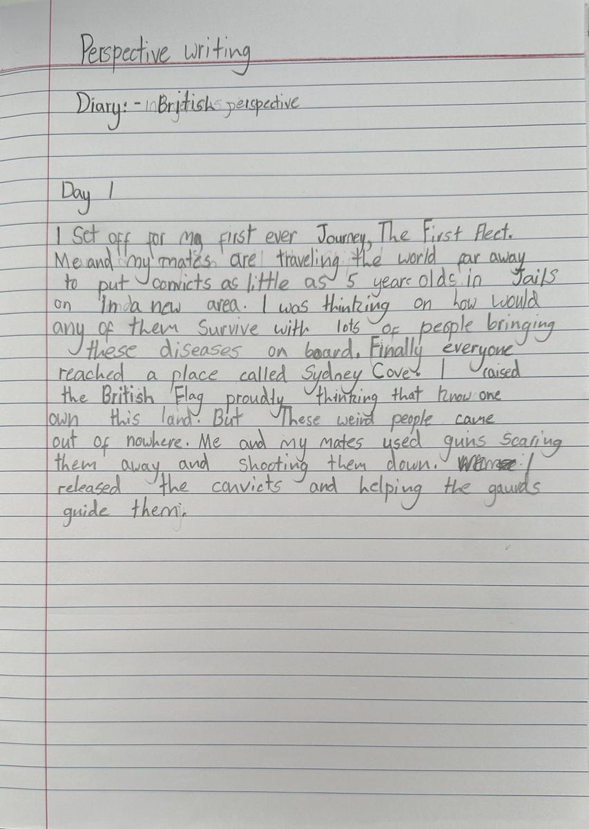 In Writing, Year 4 students have been exploring our Unit of Inquiry, Exploration reshapes civilisations and influences perspectives, through the song I Am Australian. They have analysed and annotated the lyrics to uncover how language reflects identity, culture and shared history. Students created a written piece from the a chosen perspective, channeling a particular point of view and attempting to use an authentic voice to write about the events of The First Fleet.
