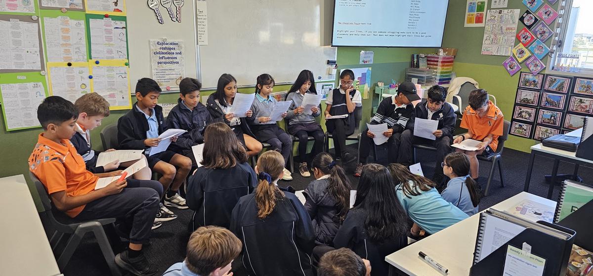 In Reading, students have participated in Readers’ Theatre, developing their fluency, expression, and confidence while bringing historical and exploratory texts to life. These experiences have supported students to see how exploration through travel, discovery and storytelling can shape societies and influence the way we understand the world today. Students have also examined how different perspectives are communicated through texts. Using Chris Van Allsburg’s The Wretched Stone, they have engaged with QAR (Question–Answer Relationship) strategies to deepen their comprehension and think critically about the messages within the story.