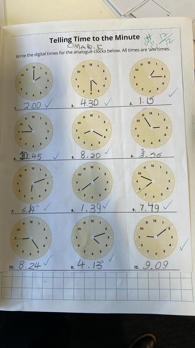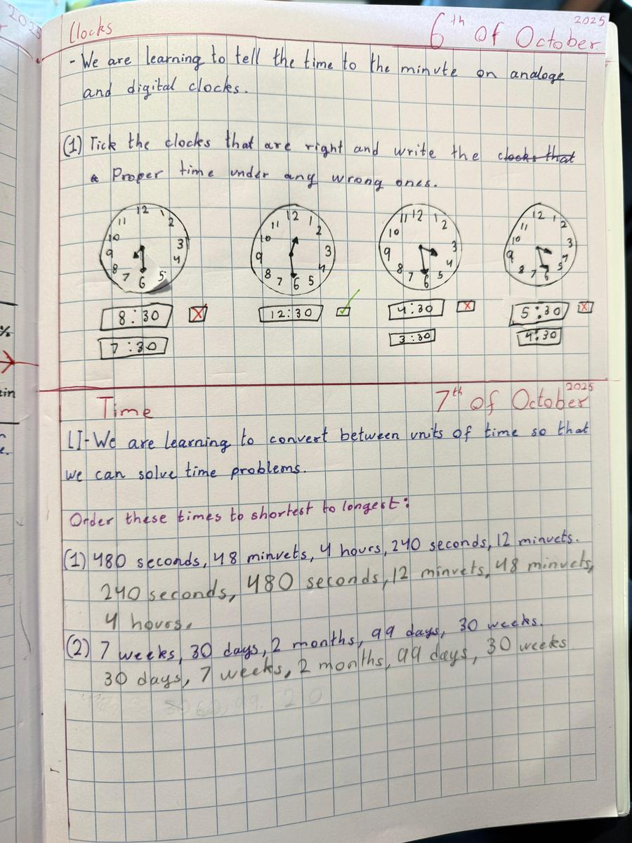 In Mathematics, students in Year 4 have been developing their skills in telling time to the minute, working with both analogue and digital clocks. They have been converting between the two formats to strengthen their understanding of how time is represented in different ways.