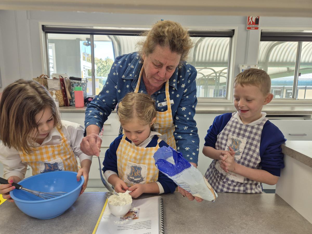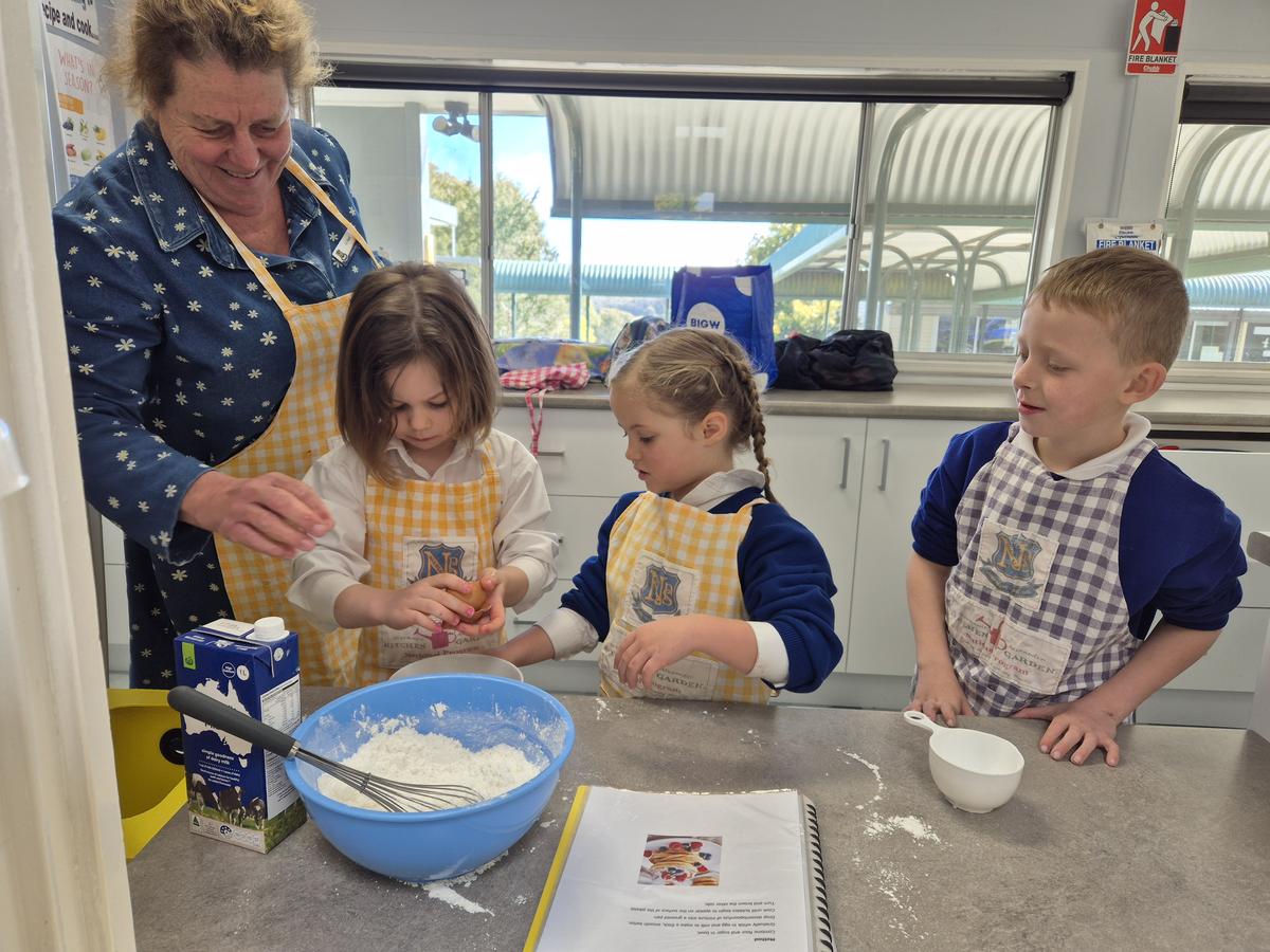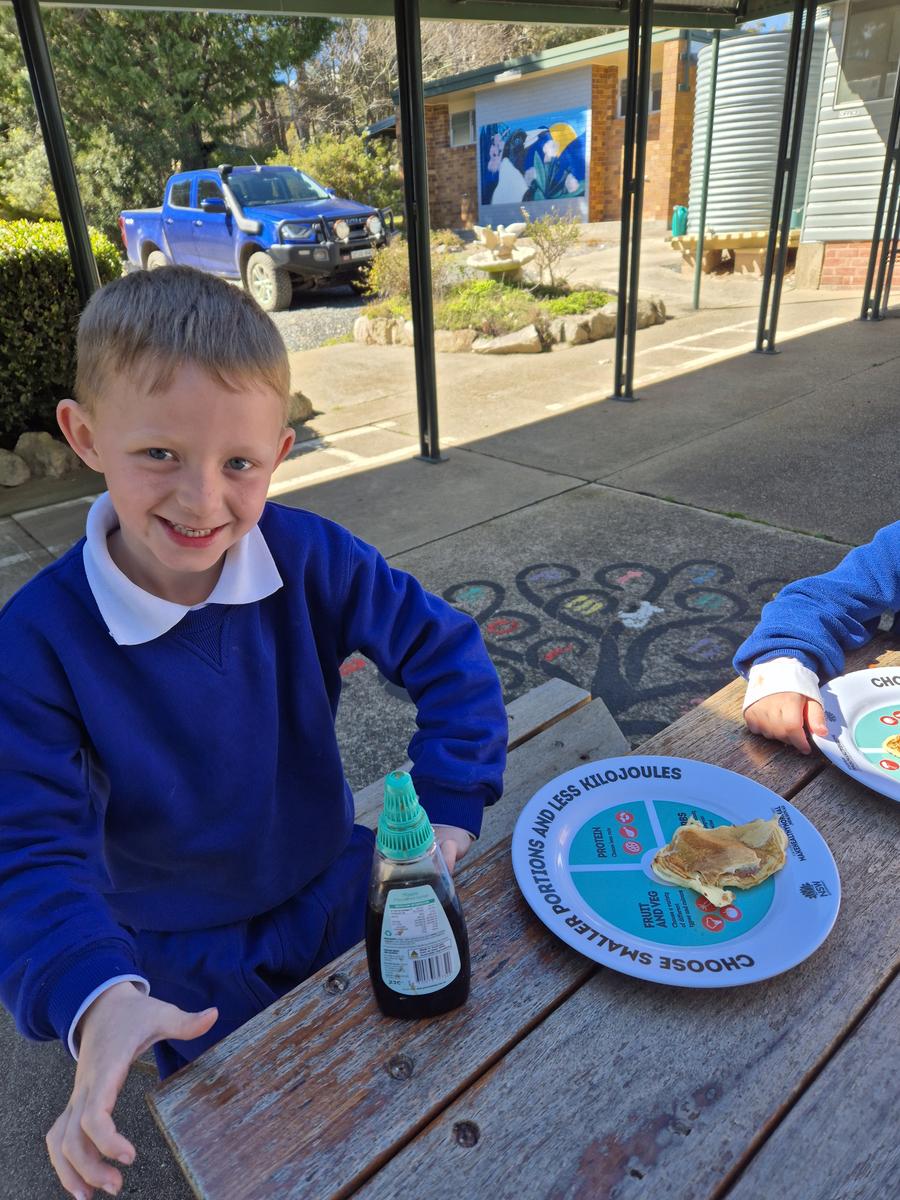 Cooking with Mrs Hunt - Whilst most of our students were on the Lake Keepit excursion, Matilda, Georgia and Ashton had a day of cooking with Mrs Hunt. They made pancakes for morning tea which were soft and fluffy and were delicious with either maple syrup or golden syrup. Matilda and Georgia then kindly made pizzas for the staff as well as themselves for lunch. Thank you to everyone involved with the cooking day!