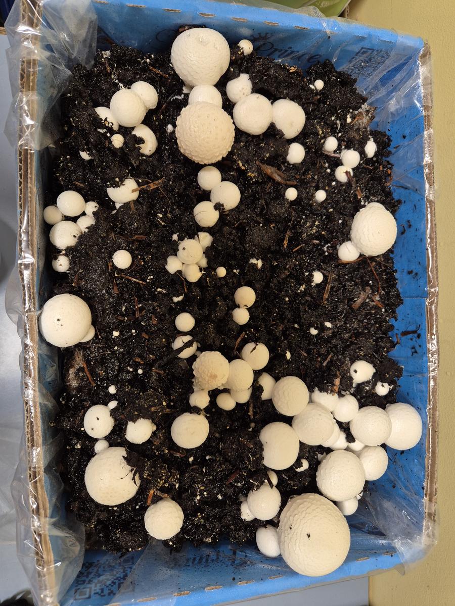 Mushrooms update - Our mushrooms have pinned and they should soon be big enough to cook with. Stay tuned for the next update.