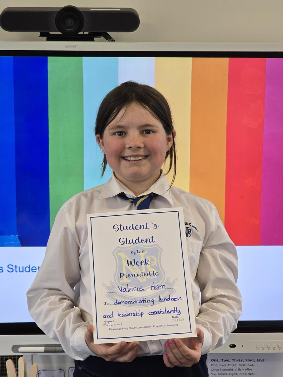 Student's Student of the Week - Valerie Ham for demonstrating kindness and leadership consistently.