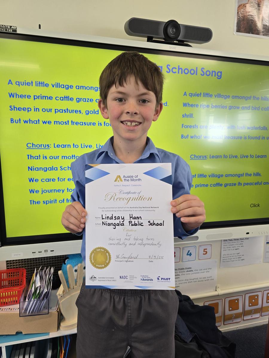 Aussie of the Month - Lindsay Ham for sharing and taking turns consistently and independently.