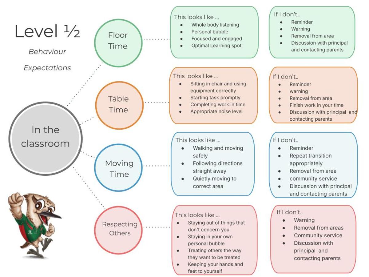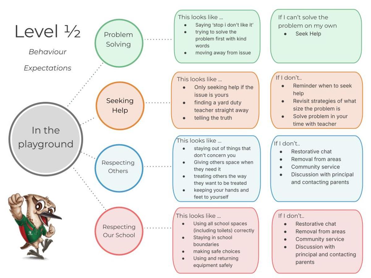 Below are the Level 1/2 behaviour flow charts . These were developed by teachers on planning day. We will be using these to address behaviour in Level 1/2 to ensure our classrooms and playgrounds are a safe and happy place for everyone.