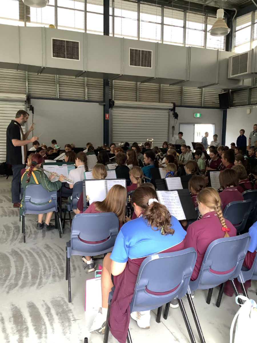 The ensemble musicianship of our Instrumental Music students has risen meteorically last week thanks to our Western Tour. Our band combined with Lockyer and Laidley High Schools and travelled over 4 days to St. George, Mitchell, Charleville, Roma and Chinchilla. We workshopped with many primary and high schools and performed for these schools as well. Our students adapted quickly to tour life, packing and unpacking the bus, having our things ready to perform, solving problems and getting along with each other.