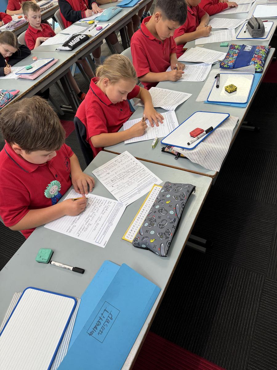 In sentence level writing, students have been reading and practising writing summary sentences by including only the most important details from a passage, such as who, what, where, when and why.