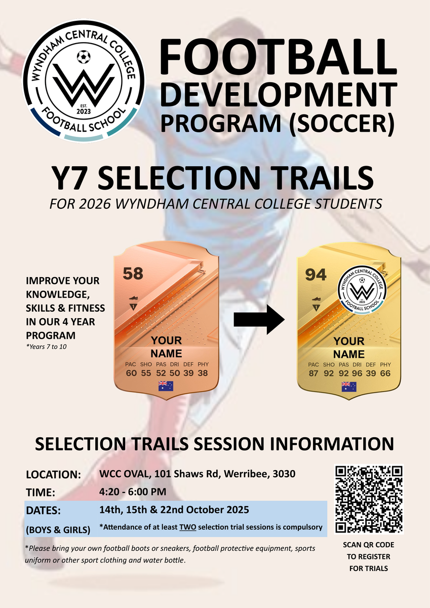 2026 Future Year 7 Students’ Football Development Program (Soccer) Selection Trials Information