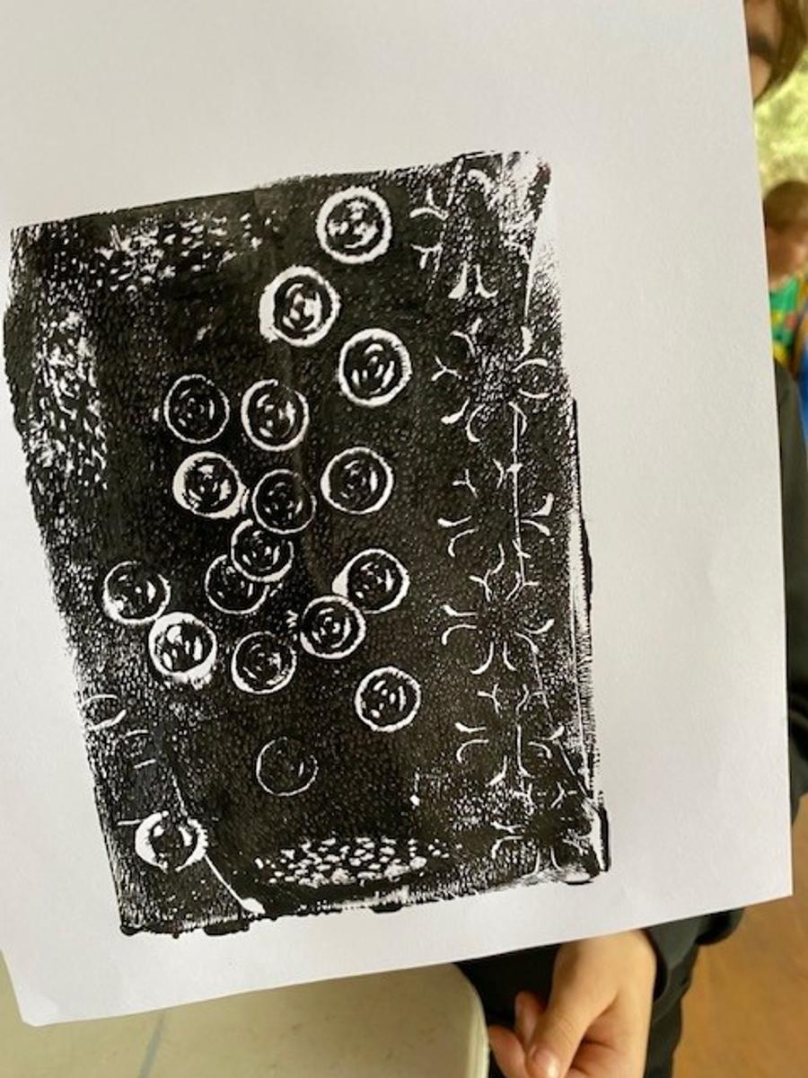 When we got there we split into two groups and started doing activities. My group’s first activity was learning about seeds. We met a seed expert, then we had a snack. After that, we went to our next activity, jelly plate printing. It was really fun (we got to make two prints each), then we had lunch.