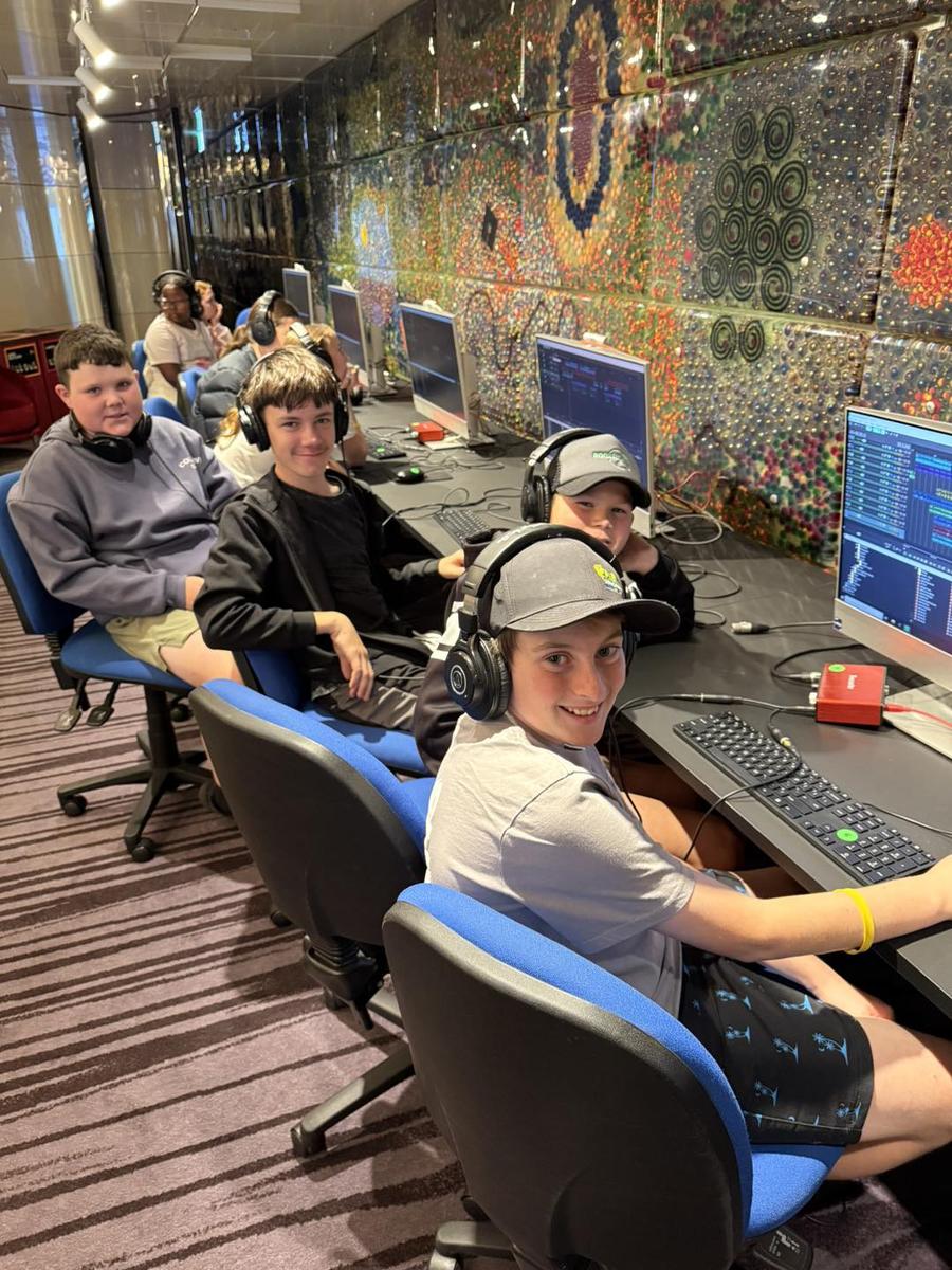 On Tuesday, we started the day shopping at the Queen Victoria Market, picking out souvenirs and trying delicious treats from the stalls. After that, we toured the MCG for a behind-the-scenes look at one of Australia’s most famous sporting grounds. Tyn said this was the best part of camp because he got to learn about the history of the ground, visit the change rooms, and walk through the exclusive club rooms where sporting legends have stood. We also headed to Hamer Hall where we worked together to create our own music, layering rhythms and beats as a group. We finished the day at the Eureka Skydeck, where Miranda said she loved seeing the sparkling city lights from 88 floors above.