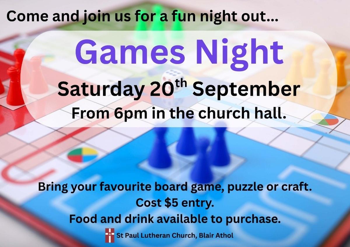Join us in the St Paul Lutheran Church Hall, 44 Audrey Ave, Blair Athol at 7pm until 9pm, with a night of fun activities planned.