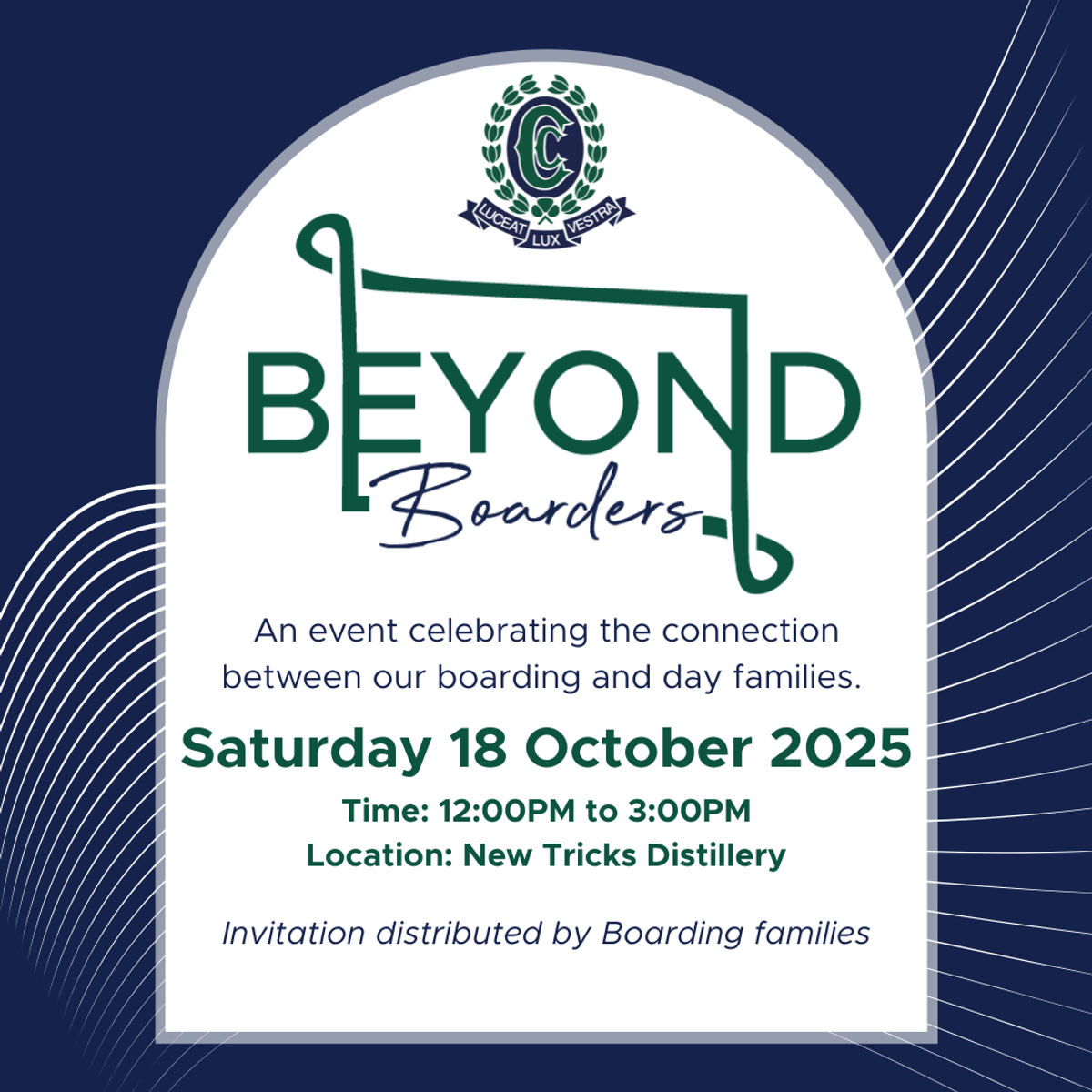 The much-anticipated inaugural Beyond Boardersevent will take place on Saturday 18 October from 12:00pm to 3:00pm. Please come along and celebrate a wonderful year of boarding.