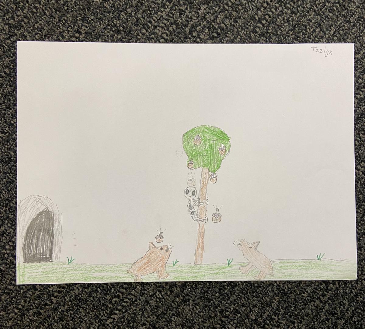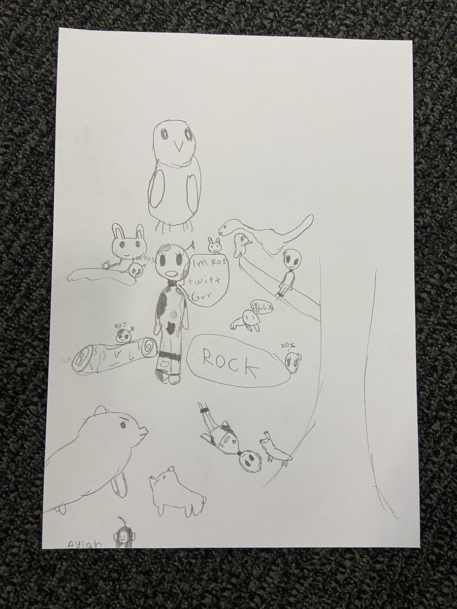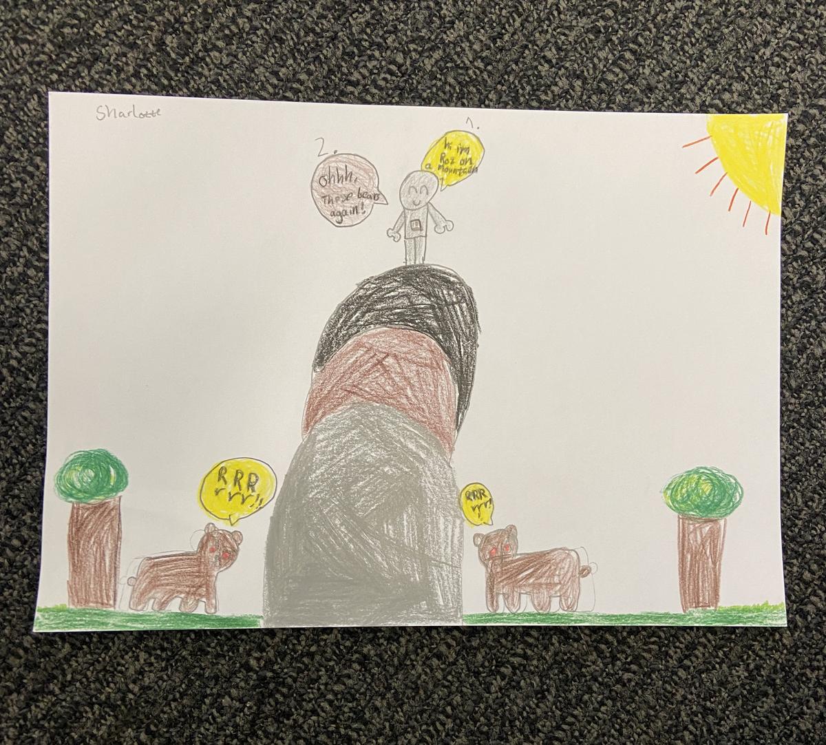 As part of developing an understanding of the story, students were able to listen to the story being read to them and to visualise what was happening. The following drawings were created by the students to illustrate how they envisioned the setting to be.
