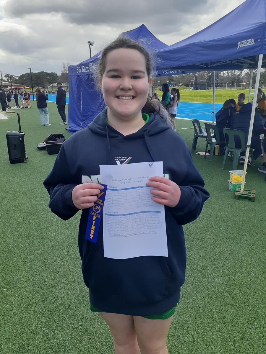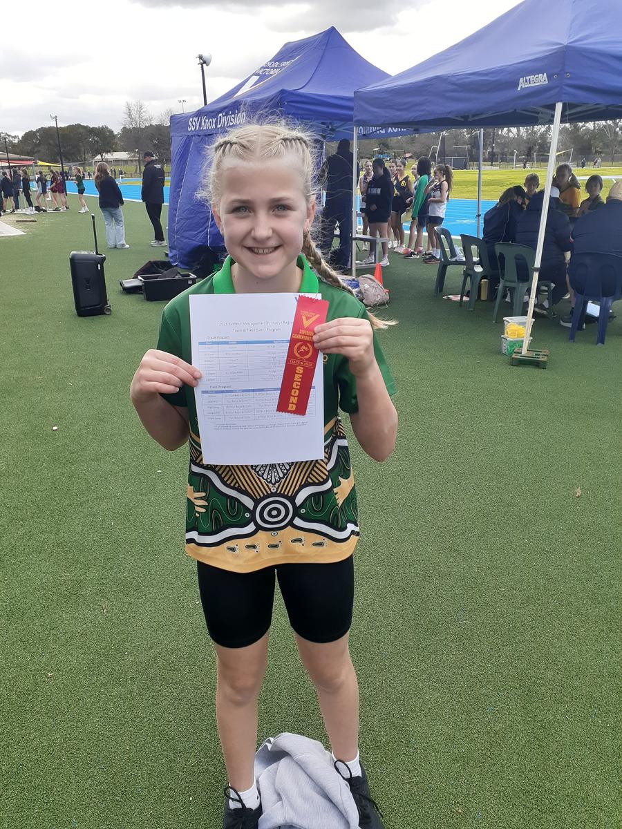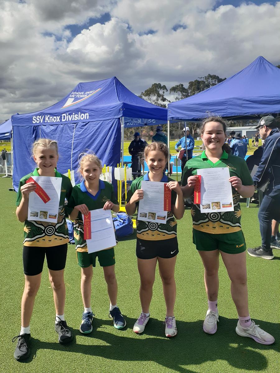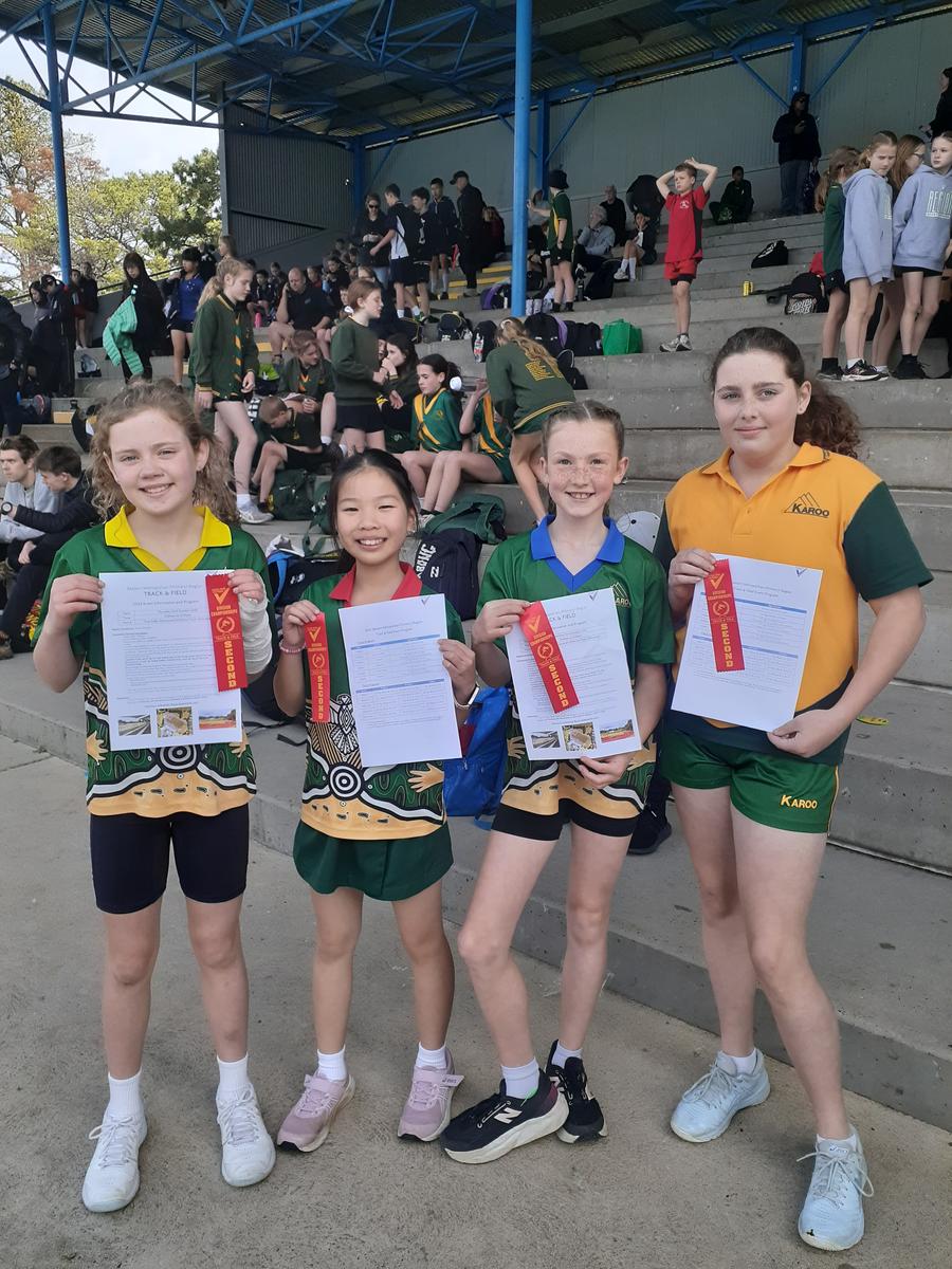 Ava S - 2nd in relay, Kirra T - 2nd in relay, Jade V - 2nd in relay, 2nd in shot put and 2nd in high jump, Zalia H - 2nd in relay and 1st in shot put, Lily V - 2nd in relay, Alira C - 2nd in relay, Natalie A - 2nd in relay, Alicia G - 2nd in relay, Kai W - 2nd in relay and 2nd in 200m, Yevin G - 2nd in relay, Timmy T - 2nd in relay, Sam G - 2nd in relay, 1st in shotput and 1st in discus, Alex G - 1st in triple jump and 2nd in high jump, Chloe V - 1st in triple jump and 1st in 800m, Anabelle L - 2nd in shot put and Jasper Z - 1st 200m.