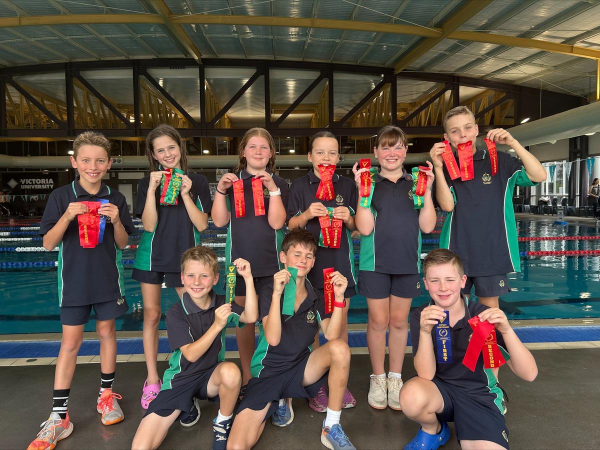 Selected primary students were invited to participate in the Altona District Swimming competition held at Vic University, Footscray. A big "Thank-You" to the fundraising team for working tirelessly to raise funds for our Altona College swim caps - as modelled by our swimmers (and Nathan ) that were put to use today.