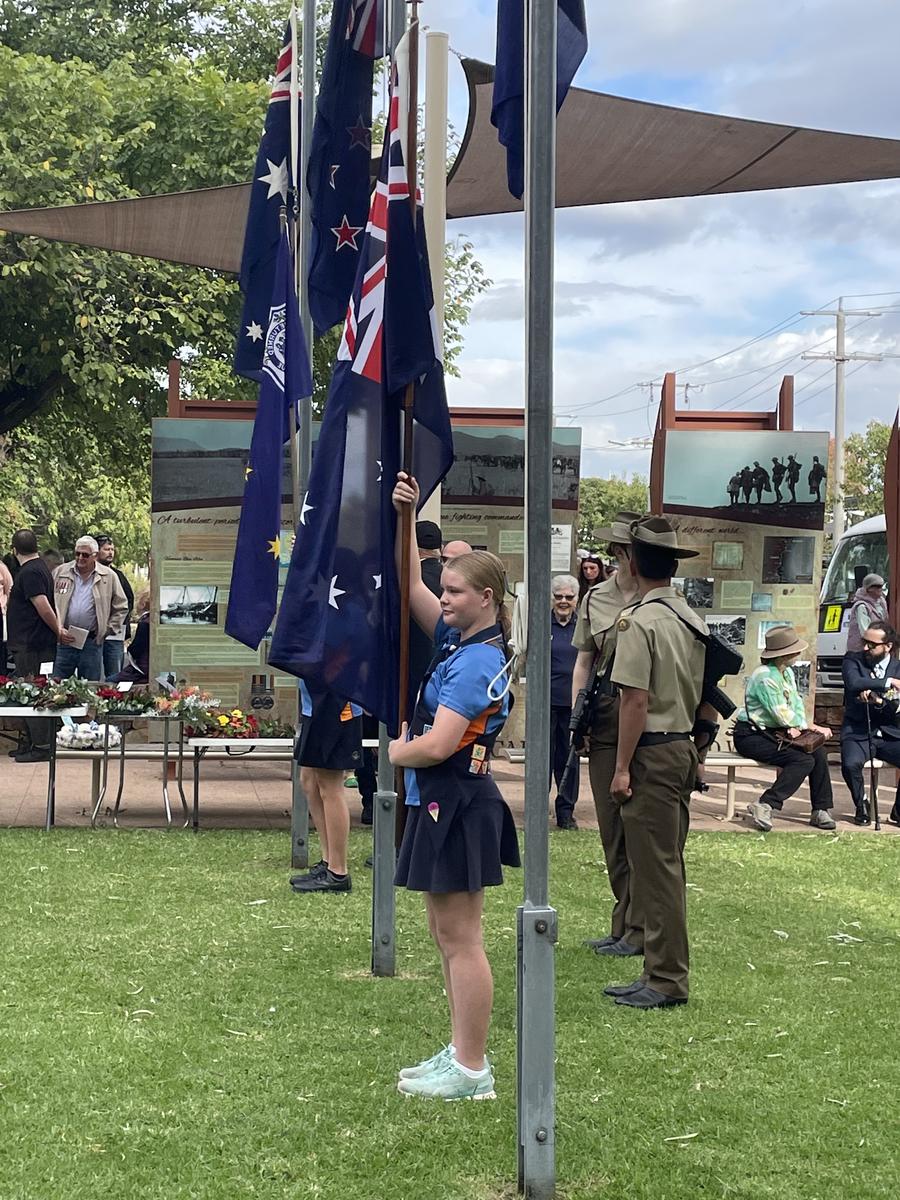 Year 11 student Lilian Richardson (third from left) also took part in the Shepparton Service, representing and laying a wreath for Wendy Lovell, due to her being in Gallipoli. Lilian does this every year as Wendy must attend other Anzac Day ceremonies.