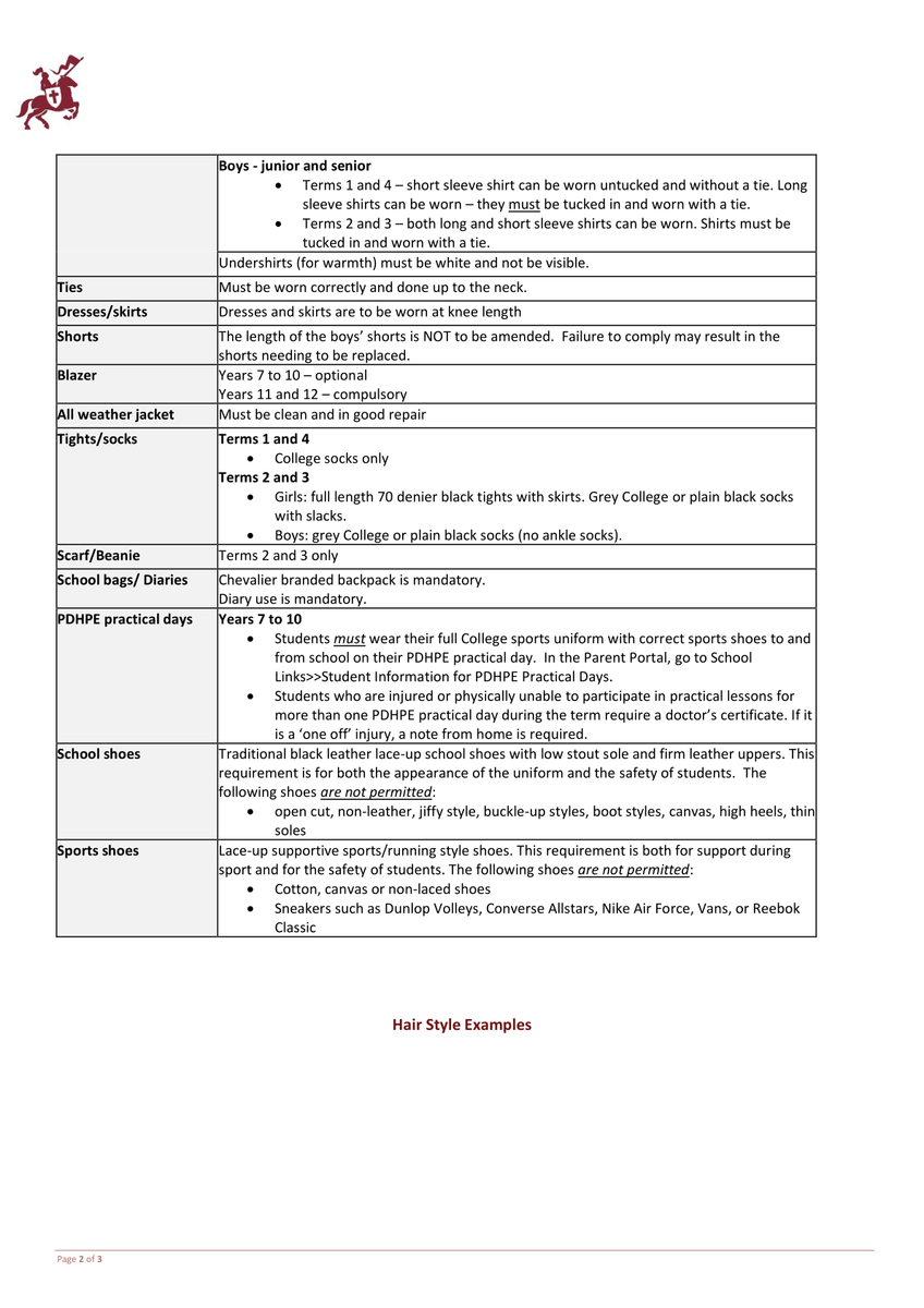 Please ensure you are familiar with the school’s Uniform Policy, particularly the guidelines relating to haircuts and personal presentation.